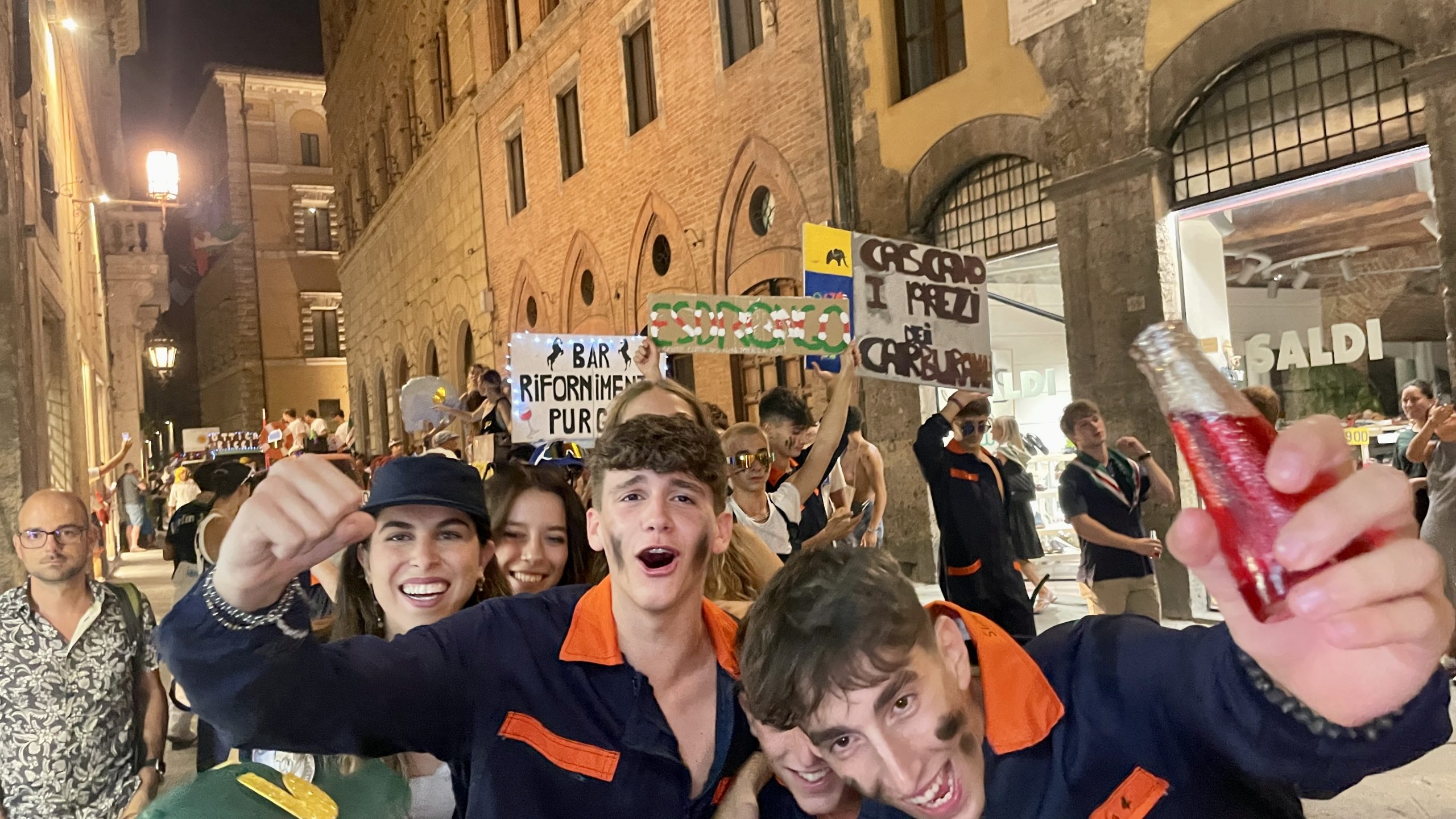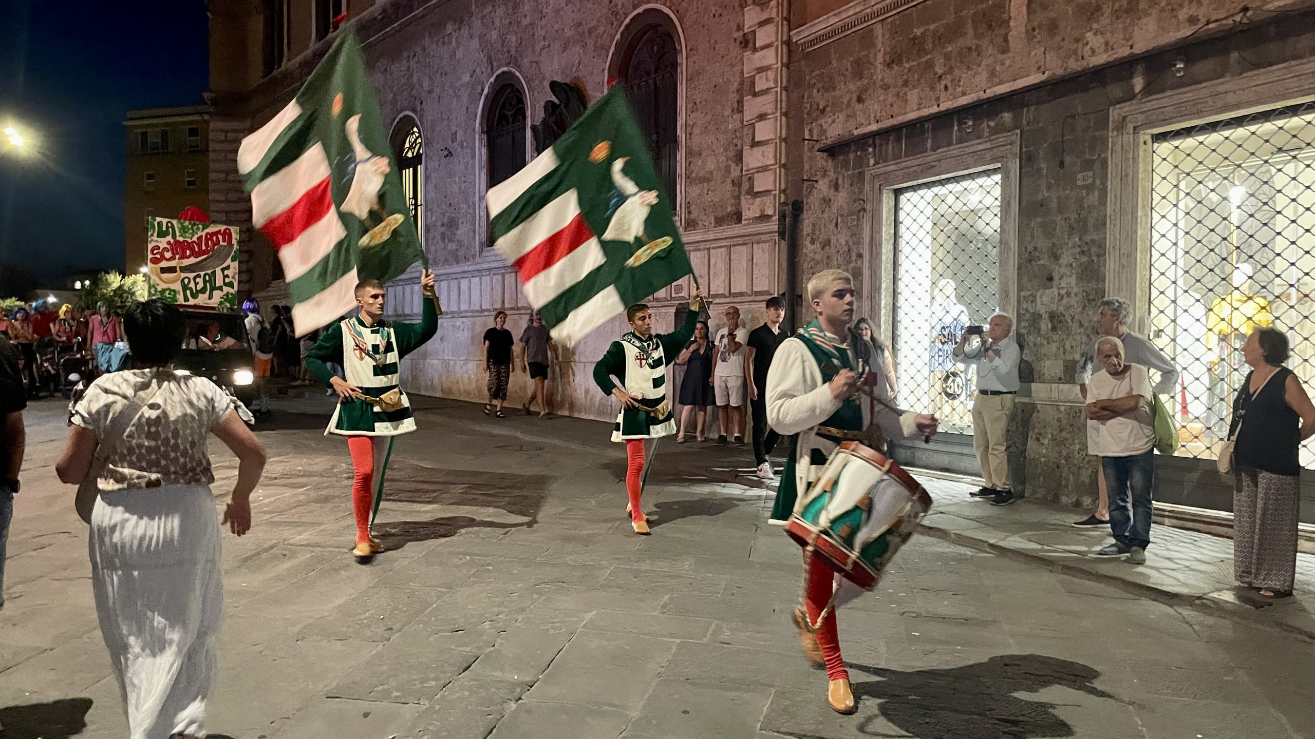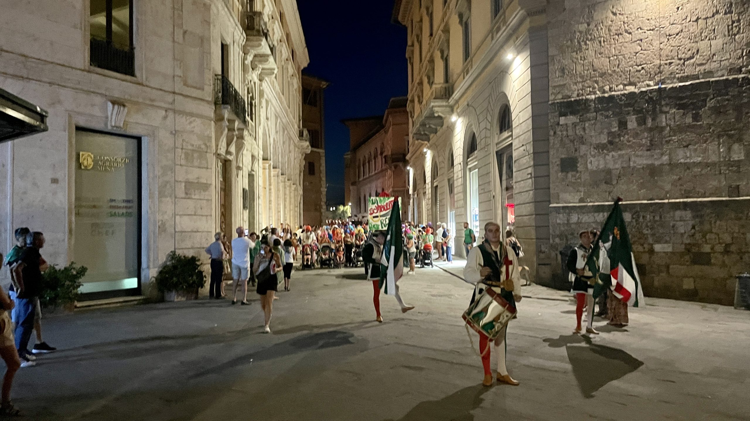 Corteo della vittoria della Contrada dell’Oca in notturna per celebrare il Palio del 16 agosto 2023, le immagini più belle