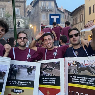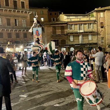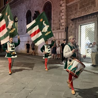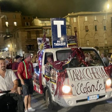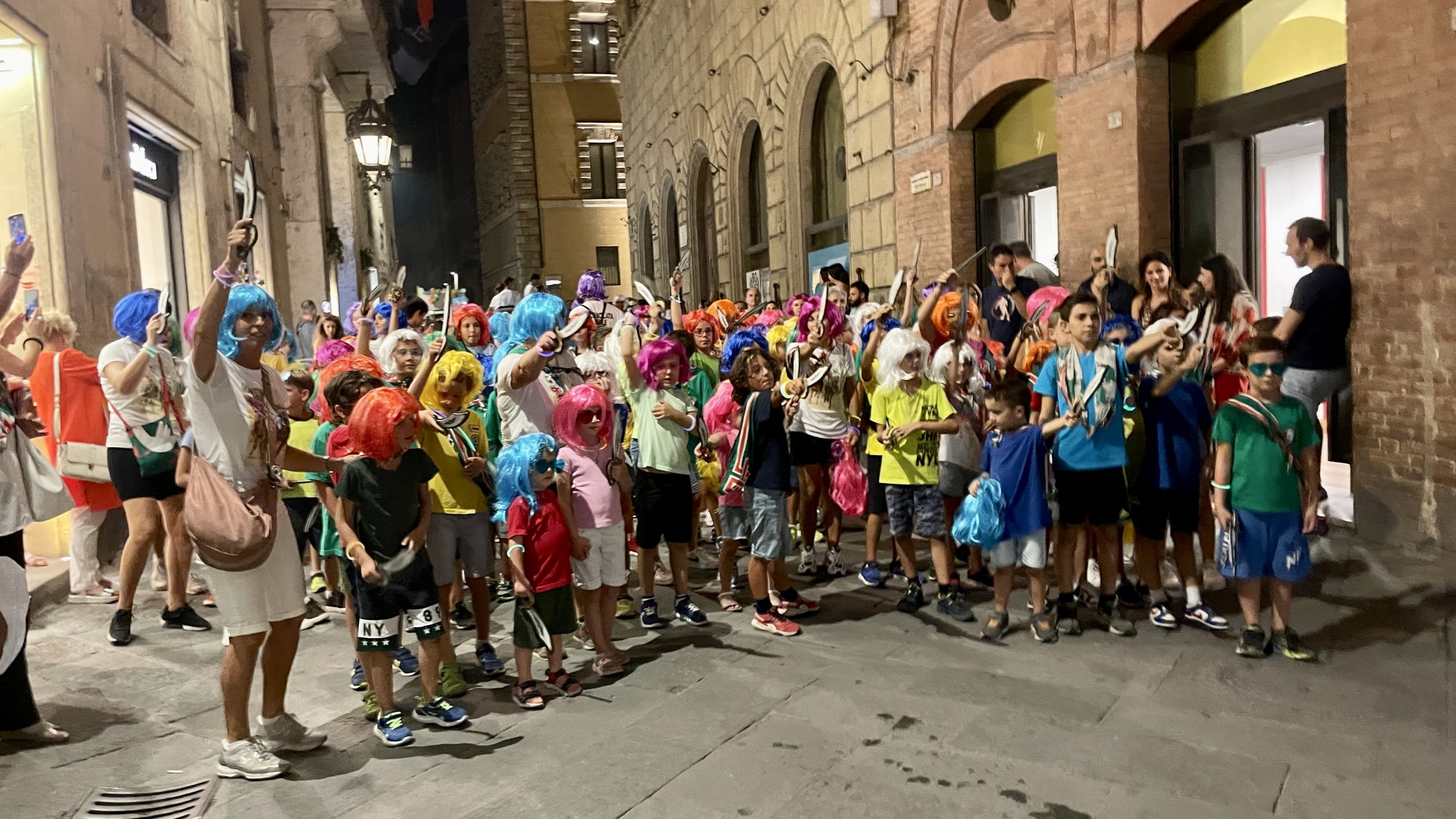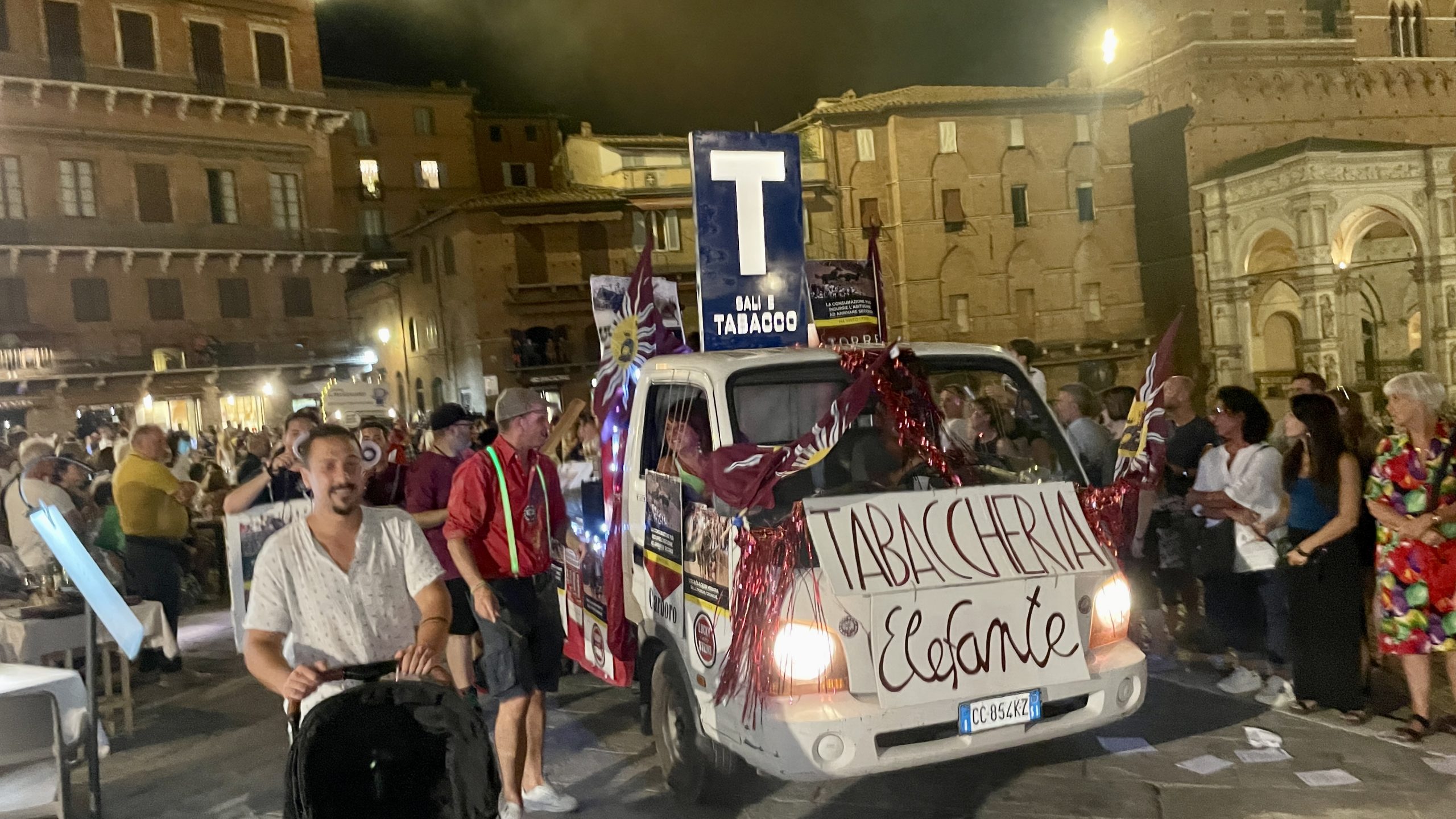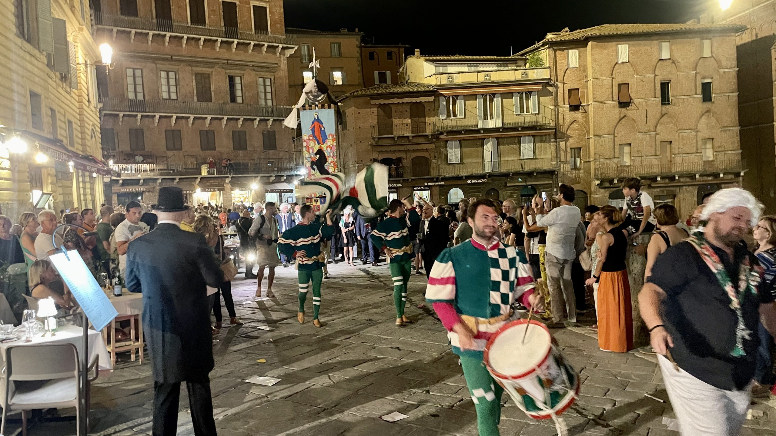 Corteo della vittoria della Contrada dell’Oca in notturna per celebrare il Palio del 16 agosto 2023, le immagini più belle