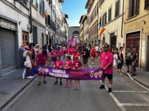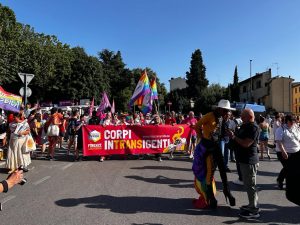 Al via a Firenze il corteo del Toscana Pride che attraverserà il centro nel pomeriggio. La manifestazione è partita dal piazzale di Porta Romana a Firenze inotrno alle 17.45, tornando nella città dopo sette anni. Questa edizione, spiegano i promotori, è dedicata ai ‘Corpi inTranSigenti’ delle persone lesbiche, gay, bisessuali e bi+, trans*, queer, intersex e asessuali. Nonostante il grande caldo sono presenti migliaia di persone e 11 carri colorati. Presenti le associazioni Famiglie Arcobaleno, Arcigay Firenze, Ireos, Arcigay Livorno, Arcigay Arezzo, Agedo, Coming Out con Arcigay Prato Pistoia, The Shade, Mamamia, Love My Way e The Social Hub. Presenti anche numerosi esponenti del Pd.