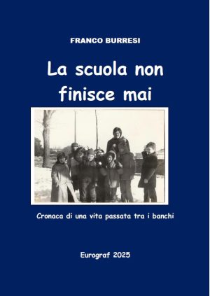 “Parafrasando il titolo di una celebre commedia di Eduardo De Filippo, possiamo dire che anche la scuola non finisce mai – scrive Burresi -. Sono entrato a scuola a sei anni e non ne sono più uscito, nemmeno una volta in pensione, perché ho continuato, per quanto mi è stato possibile, a trasmettere conoscenze e soprattutto, a imparare dagli altri. Il rapporto educativo è infatti un continuo dare ed avere, e io posso dire di avere ricevuto tanto dalla scuola, dai tanti colleghi e dai mille ragazzi incontrati durante il cammino”. “Credo che la cosa più bella del lavoro dell’insegnante – continua Burresi – sia la sensazione di fare qualcosa di utile agli altri, di costruire qualcosa. Sogni? Illusioni? Castelli di sabbia? Chissà, forse no, perché qualcosa delle parole di un insegnante riemerge ogni tanto dalla dura scorza di refrattarietà che accumuliamo di solito nella vita come autodifesa dalle mille avversità: una frase, uno sguardo, un ammonimento, un ricordo, un invito a essere sempre tenaci e onesti con noi stessi, a non cedere alla noia. Pure per questo motivo possiamo affermare che la scuola, quella che continua anche fuori delle quattro mura di un edificio scolastico, assomiglia un po’ alla novella dello stento, che dura tanto tempo e non finisce mai”.