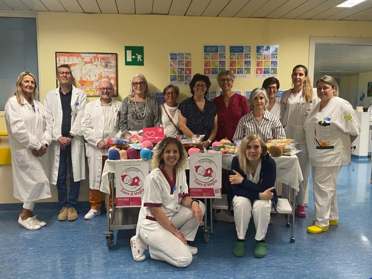 Tanti oggetti fatti a mano per riscaldare i neonati e i loro cuoricini. È la donazione che hanno fatto oggi 10 giugno l’Associazione Cuore di Maglia e il gruppo dell’uncinetto della Contrada della Torre al reparto di Neonatologia e Pediatria dell’ospedale di Campostaggia.