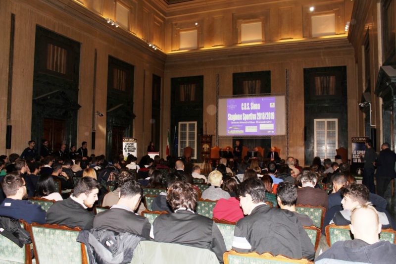 Si è svolta ieri nell’Aula Magna del Rettorato dell’Università, la cerimonia di apertura ufficiale della stagione e dei corsi del Cus Siena. Presenti autorità, sponsor, dirigenti, allenatori e atleti del Cus Siena. Il Rettore Francesco Frati, trattenuto da un improvviso impegno, è stato rappresentato dal professor Alessandro Donati, delegato del Rettore alla cittadinanza studentesca. Da lui il saluto agli atleti, ribadendo l’importanza dello sport per l’università cittadina e l’impegno nel sostenere l’attività e le strutture.
