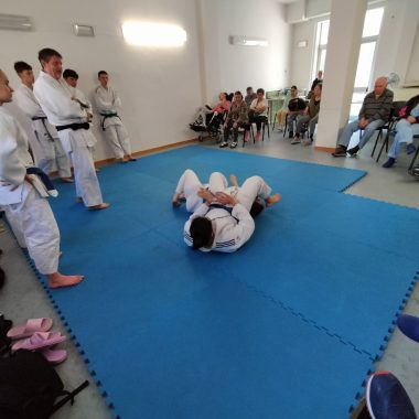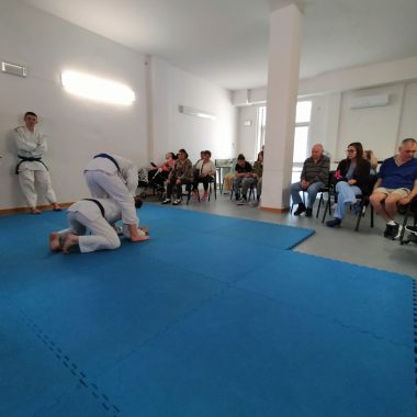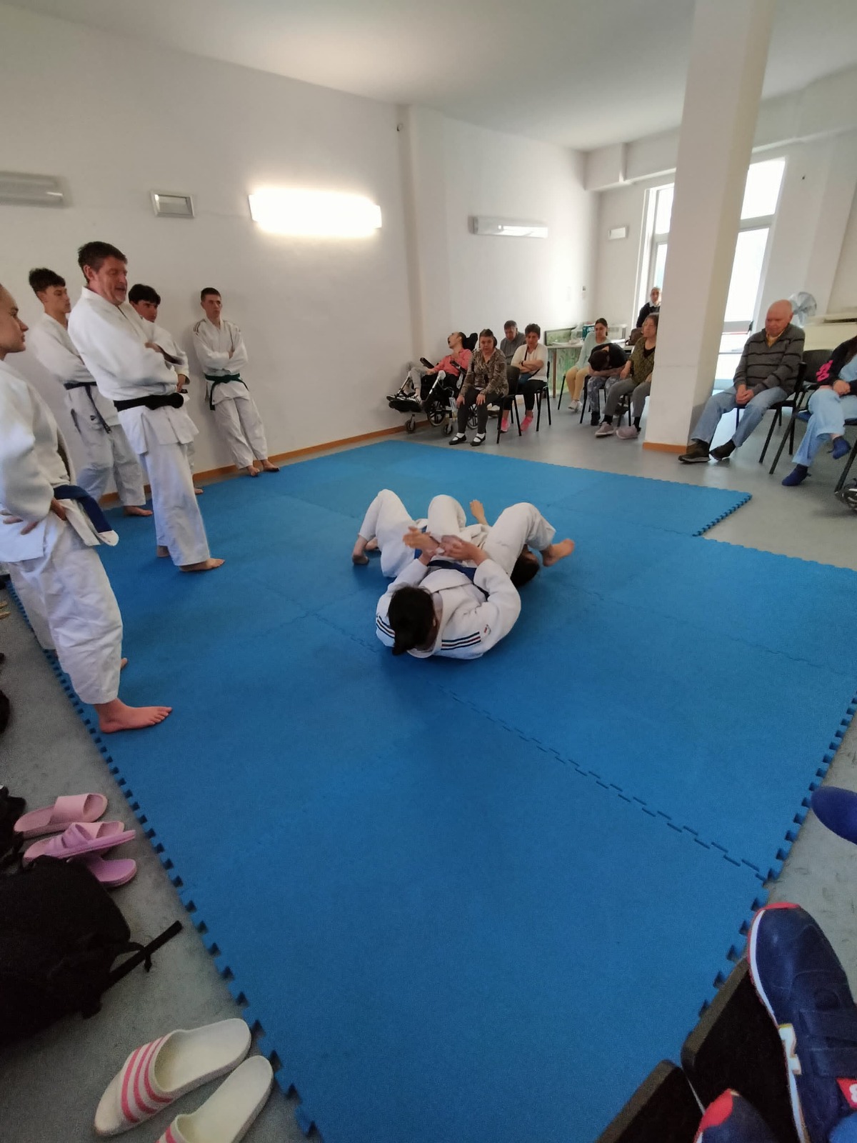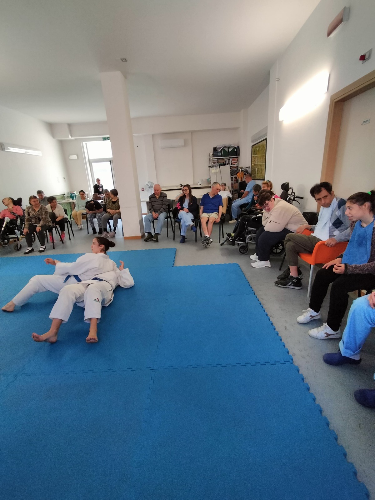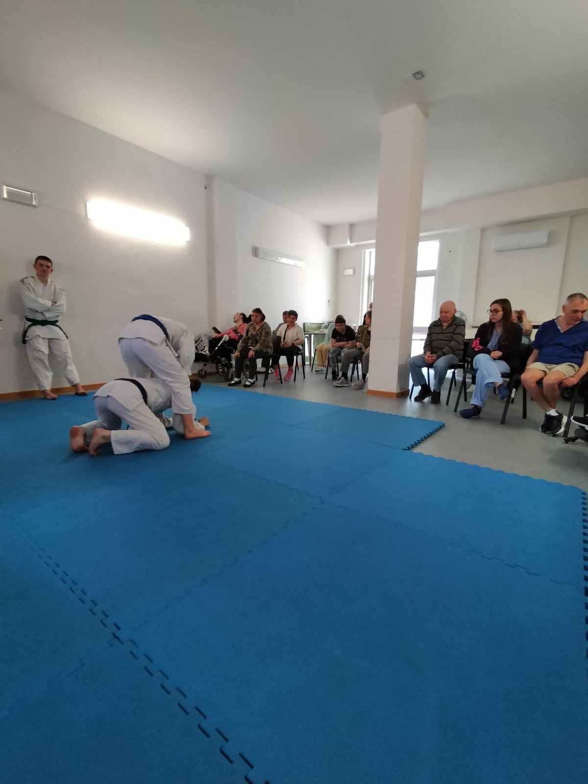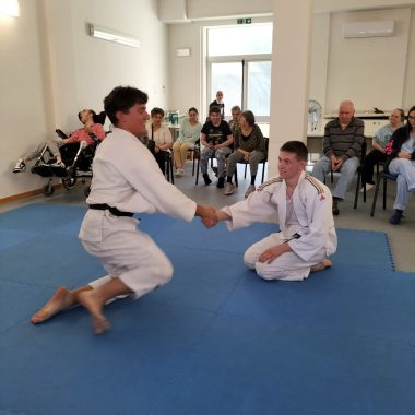 Grande è stato l’entusiasmo e l’impegno che i cussini hanno messo nell’esibire le proprie abilità, riuscendo a coinvolgere la platea così tanto che alcuni di loro, al termine dell’esibizione, hanno voluto provare a salire sul tatami per cimentarsi nell’esecuzione di alcune delle tecniche viste. È stato un momento molto intenso, si percepiva il desiderio dei ragazzi di riuscire a dare la massima soddisfazione agli ospiti della struttura che salivano sul tatami, ma con un grande timore di recare loro danno data la fragilità, ma tutti hanno fatto a gara per potersi proporre come uke ai curiosi ed entusiasti spettatori che cercavano di diventare protagonisti per un momento.