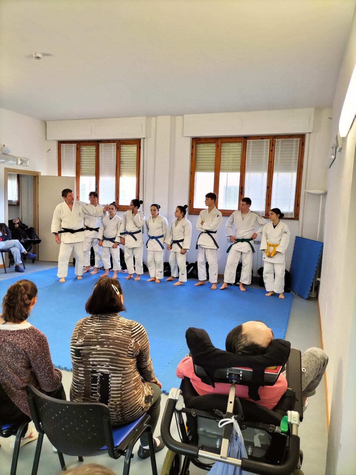 Forte è stato l’impatto iniziale sui giovani judoka sicuramente non abituati ad avere contatto con persone con questo tipo di problematiche, ma subito dopo l’agime iniziale sia i giovani senesi che i residenti si sono sciolti in tecniche sorrisi e applausi.