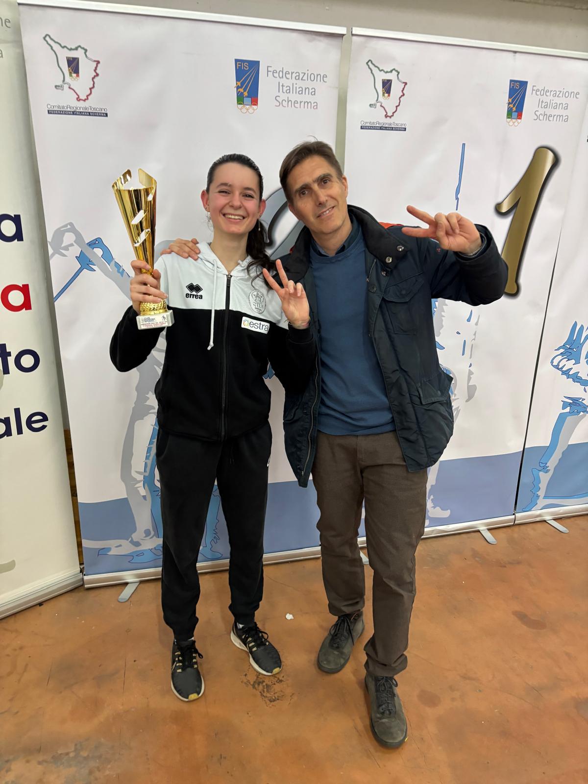 Tra le tante soddisfazioni del weekend, c’è sicuramente l’argento di Giorgia Putti nella gara di sciabola femminile, arrivato nella giornata di sabato. Un argento che vale la qualificazione ai campionati nazionali gold per la giovane atleta senese, unica a scendere in pedana per i colori del Cus Siena. Dopo un ottimo girone, raggiunge la qualifica vincendo un assalto combattuto per 15-14.