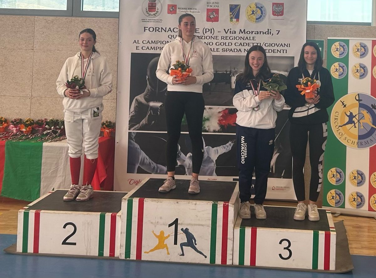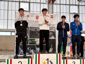 Nel fioretto maschile Matteo Danero, classe 2009, ha mostrato, insieme all’attenzione, buona tecnica per tutto l’arco della gara; grazie al risultato del girone preliminari salta il turno dei 64 e nel tabellone dei 32 sconfigge 15/2 Scarselli di Navacchio; nei sedici supera per 15/7 Rossi del Pisascherma, nel quarto di finale batte 15/8 il lucchese De Cesari e in semifinale 15/13 D’Avanzo del Pisascherma. In finale cede al pisano Tenze, di quattro anni più grande, conquistando l’argento e la qualifica al nazionale Gold under 20. Diciassettesimo Andrea Cannucci e trentesimo Riccardo Santaniello che disputa comunque due buoni incontri in diretta battendo nel primo Nesi di Agliana, 15/9, e cedendo successivamente al pisano D’Avanzo, poi bronzo, mettendo però a segno 11 stoccate.