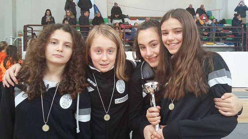 Si è svolta a Agliana(Pistoia) il campionato toscano a squadre under 14, il CUS Siena Estra ha conquistato un oro, 2 argenti , un bronzo e un quarto posto; vediamo nel dettaglio i risultati . Nel fioretto maschile allievi: Joseph Ceroni,Giovanni Settefonti,Matteo Nieto Kosta e Simone Martelli hanno conquistato il titolo battendo in una finale da cardiopalma conclusasi per 45-44 i rappresentanti di Agliana,precedentemente avevano eliminato per 45-22 Lucca e in semifinale Firenze con il punteggio di 41-36 al tempo,sempre nel fioretto le giovanissime Matilde Calamassi, Greta Bucciarelli, Stella Trabalzini e Viola Mori hanno conquistato l’argento cedendo 36-31 al CS Arezzo dopo aver sconfitto in semifinale il Pisa Di Ciolo per 36-32,nel fioretto allieve quarto posto per Lavinia Biagotti,Dalia Sveva,Camilla Bonechi e Caterina Ricci. Nella spada allieve Caterina Ricci,Dalia Sveva,Valentina Bichi e Arianna Scarselli hanno conquistato l’argento dopo aver sconfitto 45-41 in semifinale Malaspina Massa nella finalissima hanno ceduto 35-45 alla Chiti Pistoia,in campo maschile gli allievi Mirko Ciolli,Giovanni Settefonti,Joseph Ceroni e Matteo Nieto Kosta dopo aver ceduto in semifinale 42-43 al Valdera,hanno battuto nella finale per il bronzo la Chiti Pistoia 45-39.