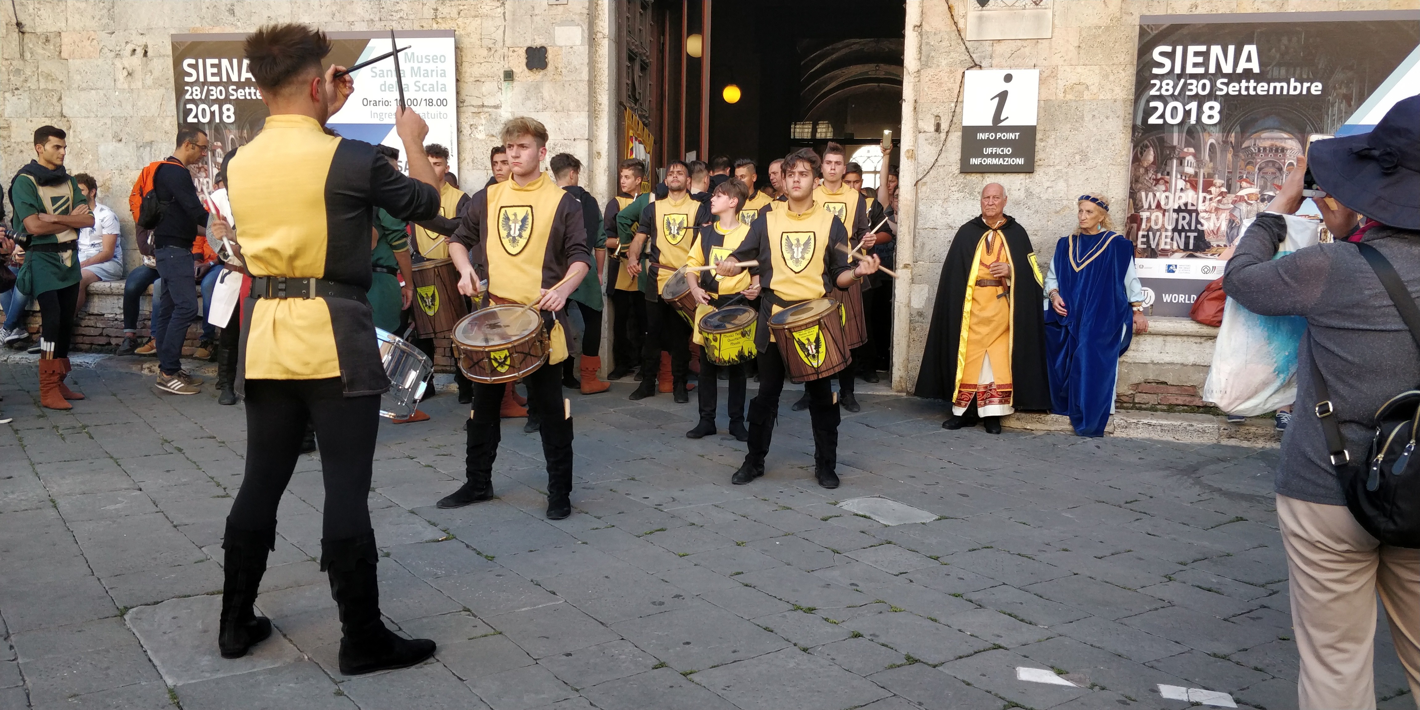 Entusiasti della trasferta senese, si sono adeguati senza polemiche alle disposizioni e hanno mostrato il loro corteo all’interno del Santa Maria della Scala e all’ingresso del museo, tra centinaia di senesi e turisti che li hanno ripresi e fotografati.