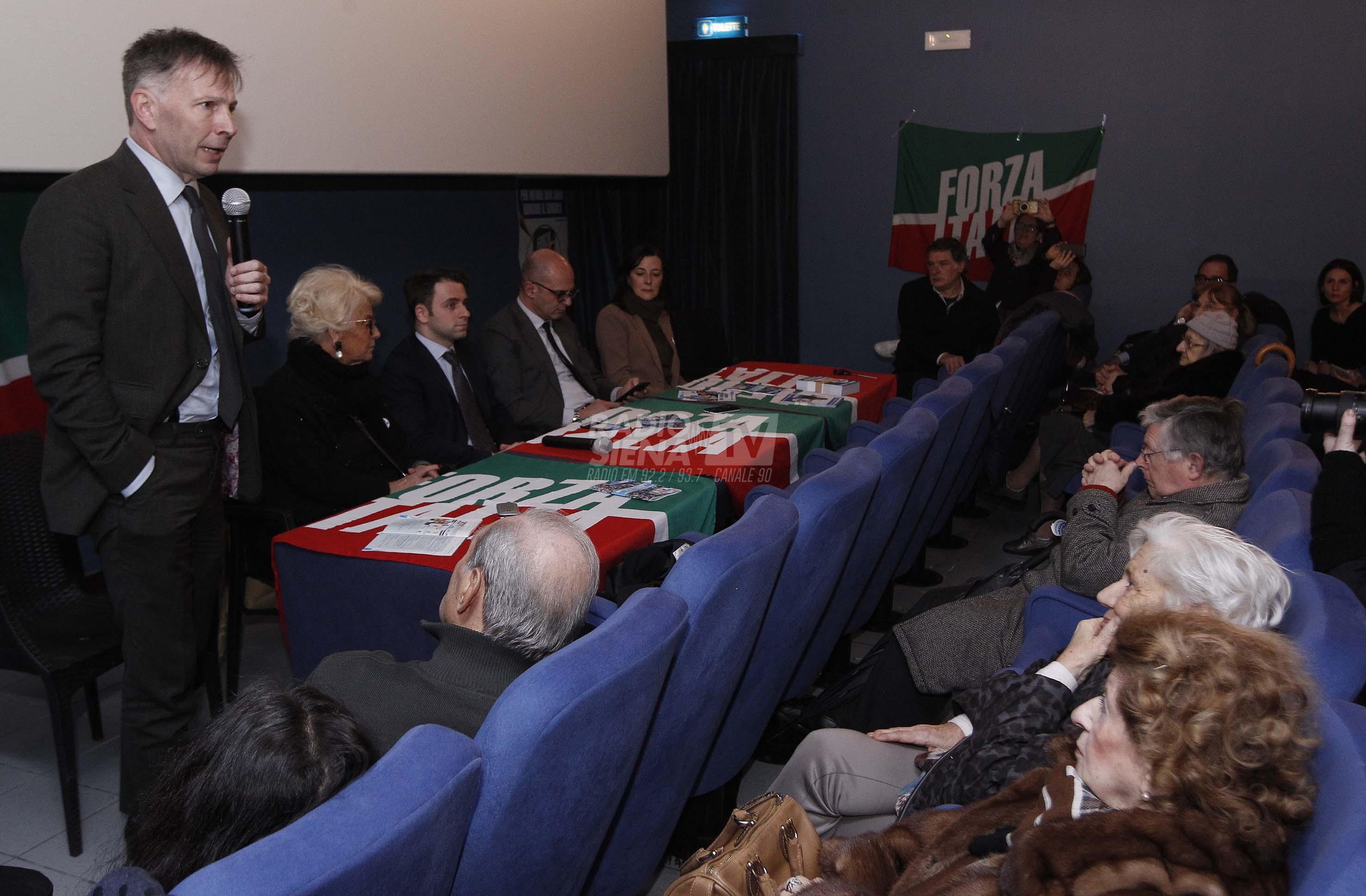 Oggi pomeriggio presso il cinema Odeon si è svolta la presentazione dei candidati senesi (Loré e Francesconi) insieme ai capilista di Camera, Stefano Mugnai, e Senato, Raffaella Bonsagnue. Presente anche il candidato sindaco Luigi De Mossi, a significare il probabile appoggio forzista in vista delle amministrative, dopo la fiducia incassata da FdI e Udc, e in futuro, forse, Lega. “A tempo debito – ha detto Mugnai riferendosi all’alleanza con De Mossi – lo seguiamo con attenzione”.