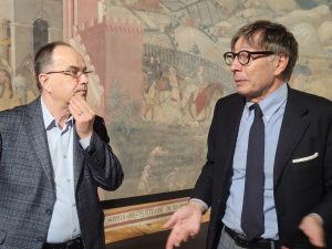 Questo pomeriggio il sindaco di Siena Luigi De Mossi ha incontrato il nuovo Presidente dell’Albania Bajram Begaj all’interno del proprio ufficio in Palazzo Pubblico. Successivamente ha condotto il presidente all’interno del cantiere del Buongoverno, attualmente visitabile grazie all’iniziativa del Comune di Siena che permette una visita del tutto particolare, attraverso i ponteggi allestiti per il restauro del celebre affresco di Ambrogio Lorenzetti.