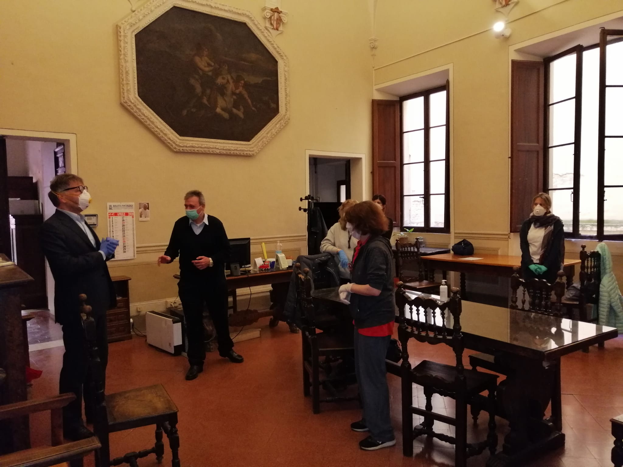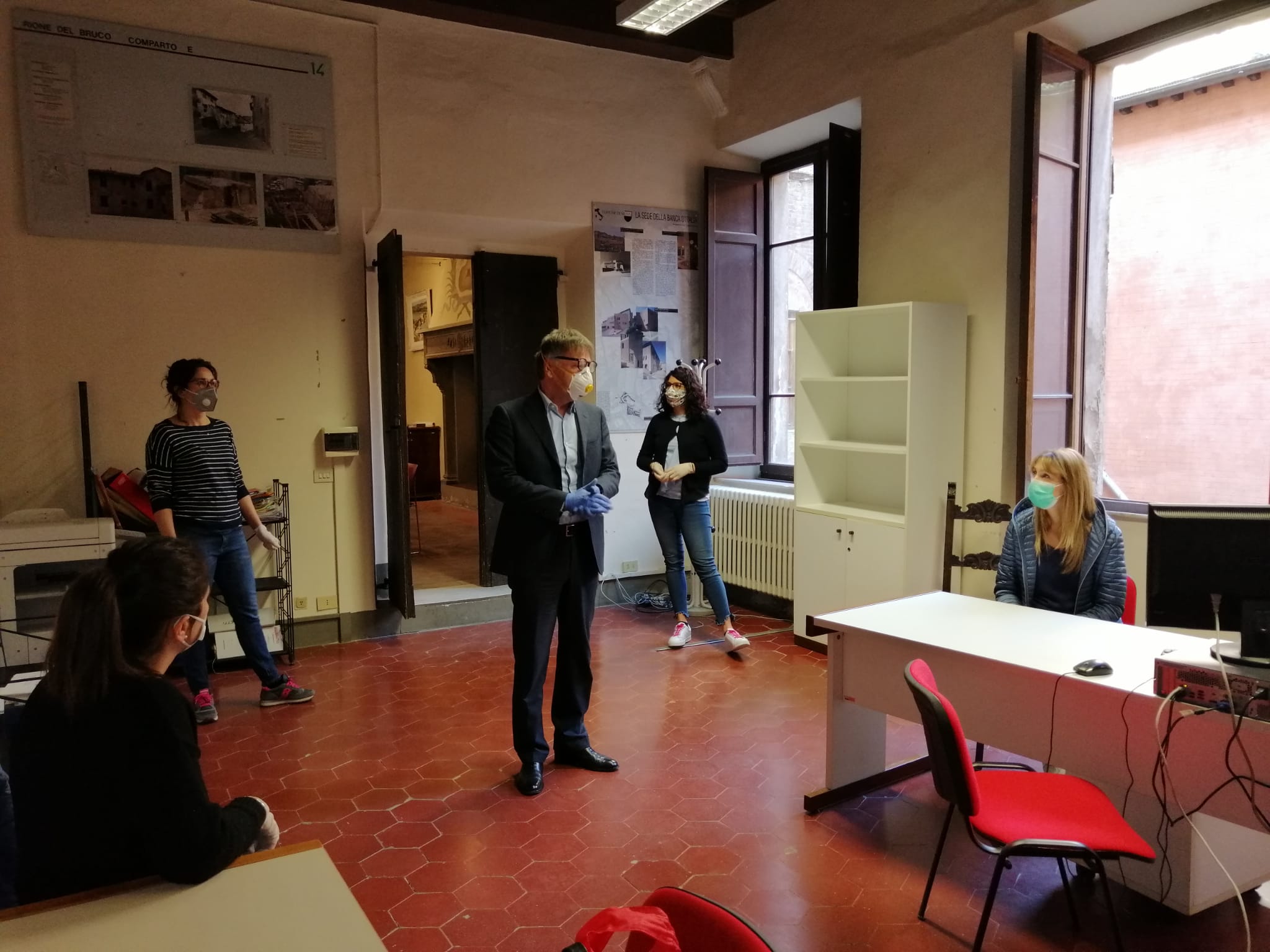 Le mascherine alle 26mila famiglie senesi: il sindaco ha incontrato i dipendenti comunali che da stamattina sono al lavoro per l’imbustamento delle mascherine. “Stiamo preparando le buste, mettiamo insieme le mascherine nostre e le tre della Regione, tra oggi e domani mattina partirà la distribuzione alle famiglie del nostro territorio – spiega il sindaco – Saranno consegnate porta a porta grazie alle Associazioni di Volontariato, alle Contrade ed alle Parrocchie, oltre, ovviamente, al personale del Comune di Siena”.