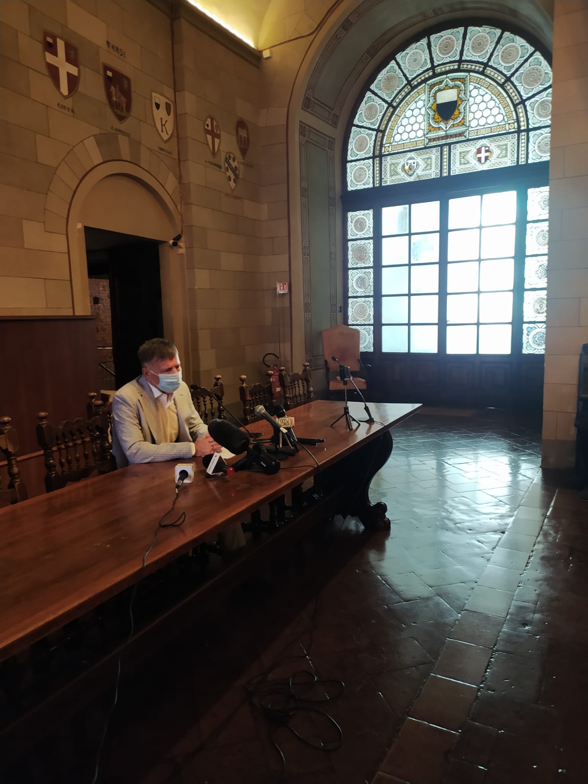 “No alla macelleria sociale: la banca deve poter vivere”. Questo il monito lanciato oggi dal sindaco di Siena Luigi De Mossi, che in conferenza stampa alla sala delle Lupe a Palazzo Pubblico ha commentato le recenti evoluzioni che vedono avviata una trattativa esclusiva tra Unicredit e Mef per alcuni rami di Mps. Una svolta che potrebbe cambiare le sorti dell’istituto di credito e di tutta la città e il territorio. In ballo ci sono migliaia di lavoratori, una tradizione e un legame secolare con la comunità.