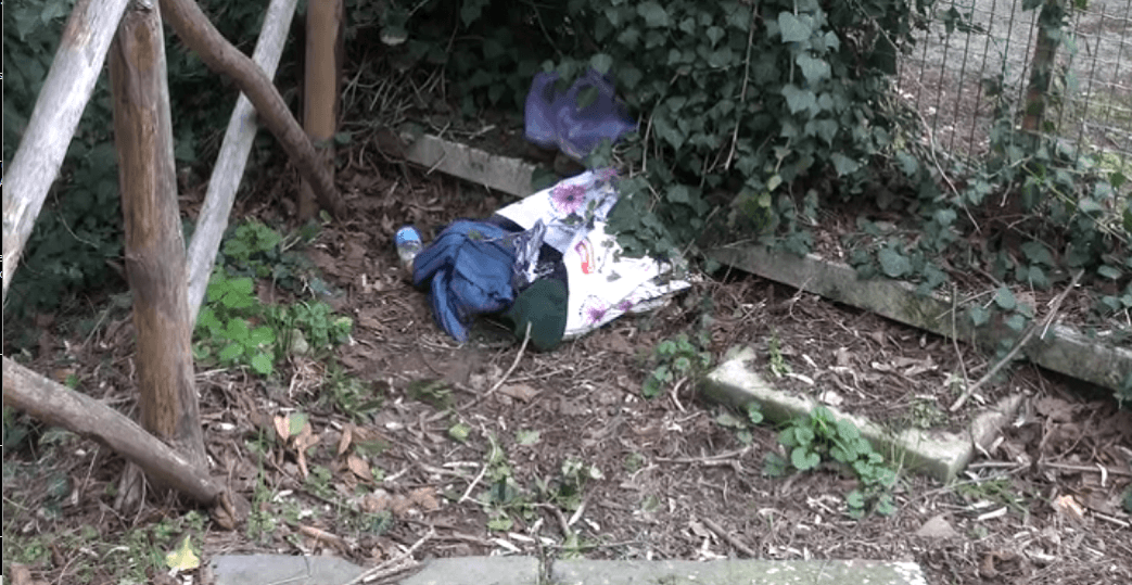 Degrado assoluto nei giardinetti tra vetri, cartacce, rifiuti e vestiti: di notte si spaccia e i senzatetto prendono la residenza