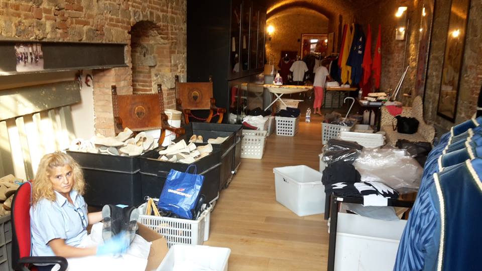 E’ necessario un mese di lavoro per mettere a posto i costumi del Corteo Storico, e sono i dipendenti comunali a portare avanti questo compito con attenzione e amore.