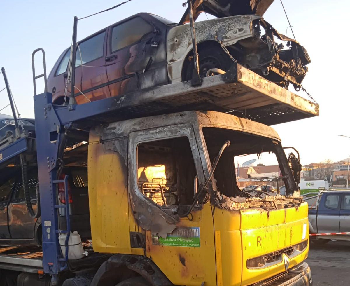 Il primo mezzo è bruciato la notte tra il 28 febbraio e il 1 marzo, il secondo ieri notte. Bruciate anche alcune auto che trasportavano, con un danno ingente per l’azienda, che ha la sua sede principale a Siena.