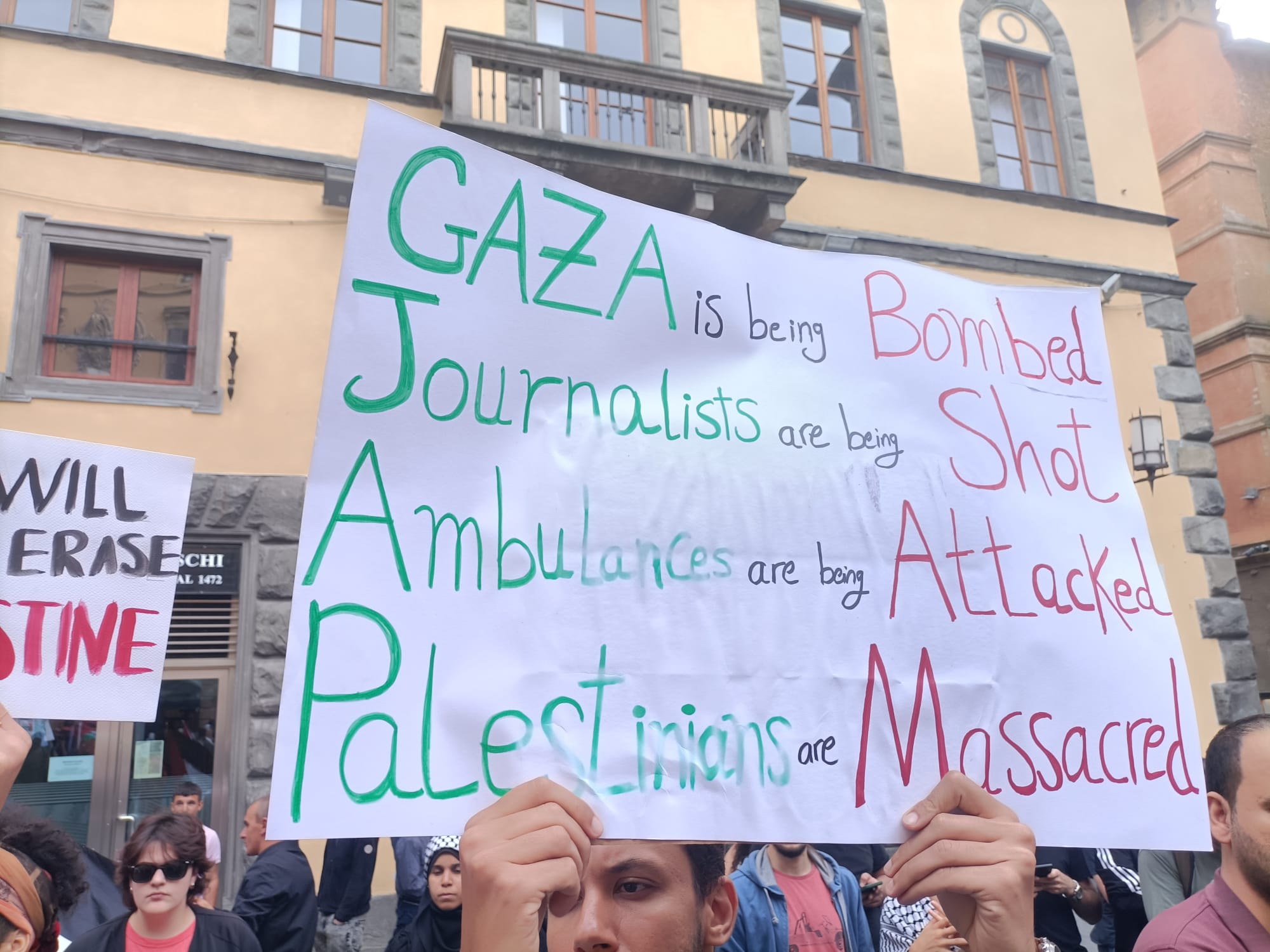 “Non si può rimanere indifferenti di fronte al massacro che sta coinvolgendo l’area della Striscia di Gaza, con più di due milioni di persone sotto bombardamenti costanti, a cui lo Stato di Israele ha tolto acqua, cibo ed elettricità. Proviamo orrore di fronte all’escalation di violenza degli ultimi giorni, ma non possiamo limitarci a chiedere un ritorno allo status quo precedente. Il problema risiede in una quotidianità fatta di embarghi, assedio, annessioni di territori, checkpoint, divisioni, discriminazioni nei confronti della comunità palestinese, più volte documentata nelle relazioni di numerose organizzazioni internazionali” hanno spiegato i manifestanti.