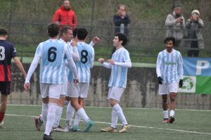 Il primo tiro, però, è ad opera dei chianini, Viligiardi si aggiusta per un tiro che finisce abbondantemente fuori. Il primo tempo degli ospiti finisce sostanzialmente qua, il Mazzola prende sempre più campo fino a sbloccare la partita al minuto 12: sugli sviluppi di un calcio piazzato Iacoponi viene vistosamente trattenuto da Corsetti, l’arbitro assegna un calcio di rigore che Geraci trasforma spiazzando Marini. La rete subita non scuote la Sinalunghese, al 20′ ci prova Bouhamed ma Marini è attento e blocca. Al 24′, ancora da calcio piazzato, i locali raddoppiano: palla in area a cercare Bonechi, sponda aerea per l’accorrente Borri che chiama l’estremo difensore ospite agli straordinari, sulla ribattuta ancora il numero 11 realizza a porta praticamente sguarnita. I rossoblu provano a salire al 38′, Ceppodomo cerca la porta calciando malamente a lato. L’ultima occasione è per il Mazzola, Geraci stoppa e calcia a lato di prima intenzione. Nella ripresa la reazione della Sinalunghese non arriva e il copione non cambia, il Mazzola fa la partita cercando a più riprese il goal che chiuderebbe anticipatamente la contesa. Al 50′ chiusura provvidenziale di Corsetti sull’accorrente Gucci, al 53′ Borri cincischia troppo con la palla facendosi rimontare dalla difesa ospite. All’ora esatta di gioco doppia chance biancoceleste con Taflaj, le conclusione del funambolico numero 10 terminano alte sopra la traversa. Al 65′ altra duplice opportunità per i locali: prima Borri arriva in leggero ritardo su un traversone di Vecchiarelli, poi è superlativo Marini sulla conclusione ravvicinata di Geraci. L’appuntamento con la doppietta personale è solamente rimandato al minuto 72, la difesa rossoblu non riesce ad allontare favorendo l’inserimento di Geraci che incrocia sul secondo palo gondiando la rete. E’ solo in questo momento che gli ospiti abbozzano una reazione fine a se stessa, le incursioni di Canapini e Gomez, subentrato nella ripresa, non impensieriscono mai un inoperoso Fontanelli. Al triplice fischio è netto il 3 a 0 con il quale il Mazzola sconfigge la Sinalunghese, partita senza storia dominata dal primo all’ultimo minuto.