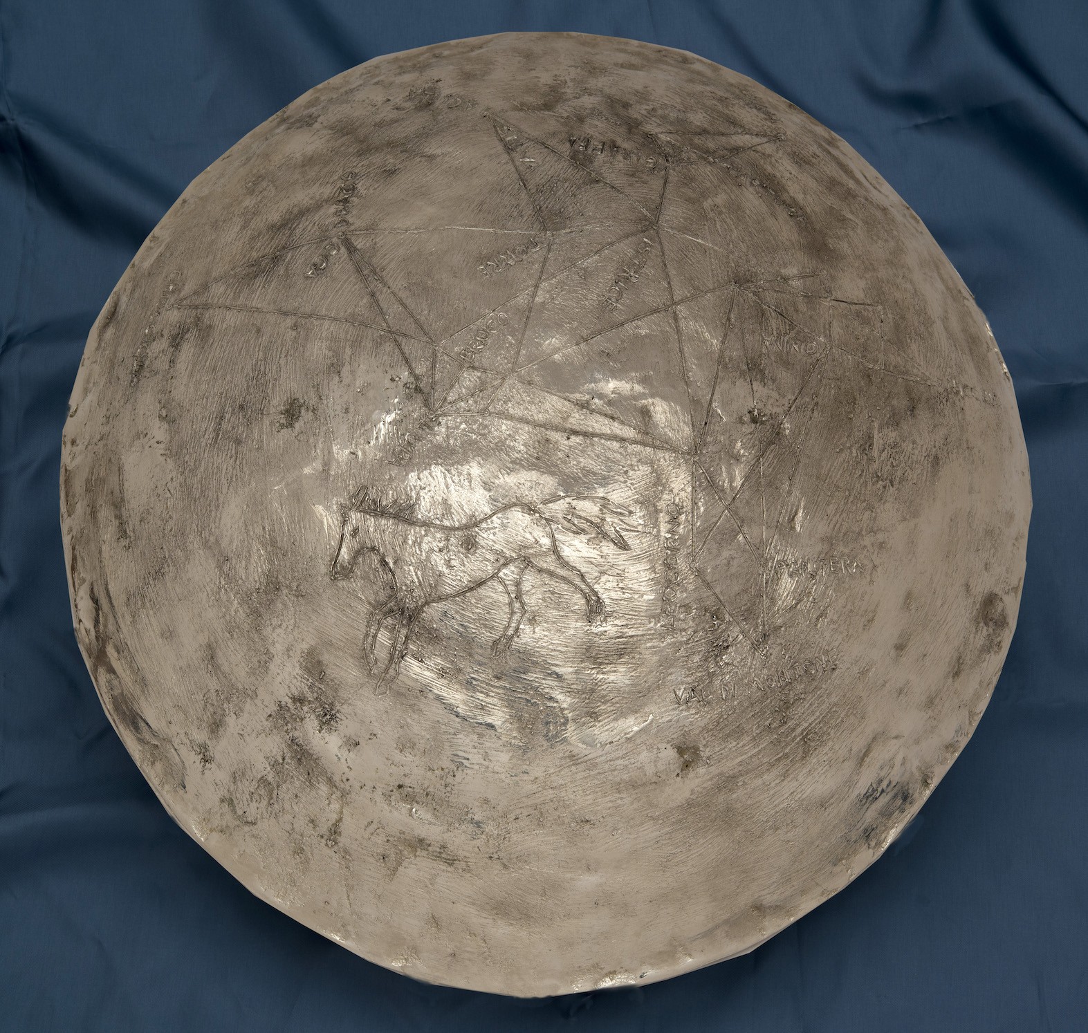Il Masgalano per i Palii del 2019 è un bellissimo bacile di bronzo bagnato nell’argento che sintetizza l’araldica di uno dei più antichi “xenodochio”, ospizio gratuito per pellegrini e forestieri della storia: l’antico ospedale Santa Maria della Scala.