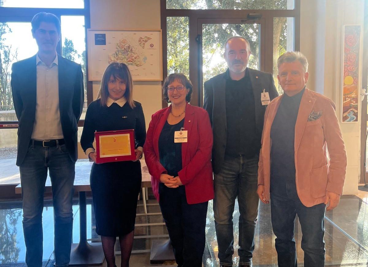 Elena D’Aquanno, Presidente della Fondazione Enoteca Italiana Siena, ha ricevuto nella giornata di domenica 22 febbraio, il Grifo Nobile 2026, prestigioso riconoscimento conferito dal Consorzio del Vino Nobile di Montepulciano nell’ambito della trentaduesima edizione dell’Anteprima del Vino Nobile, svoltasi presso la Fortezza di Montepulciano.