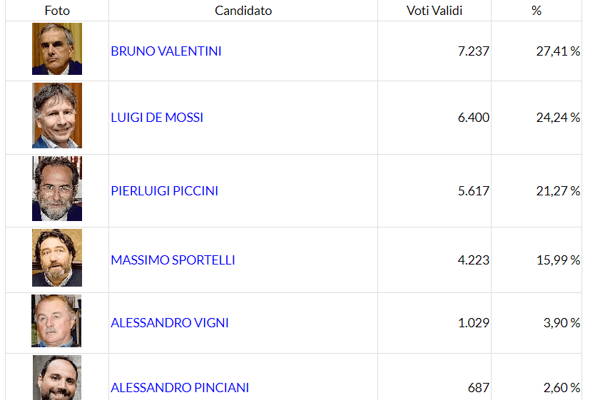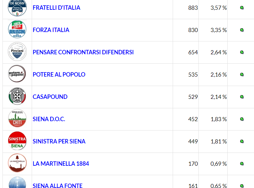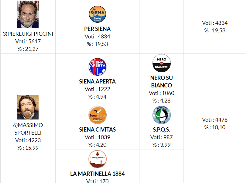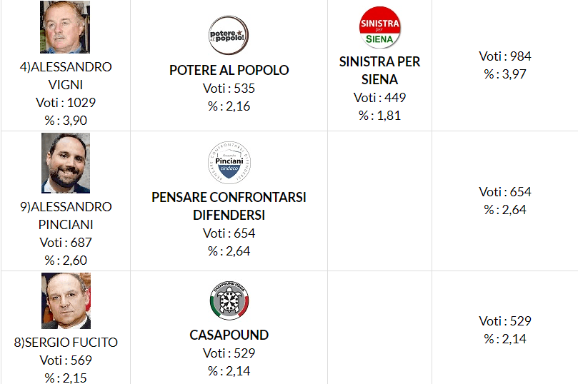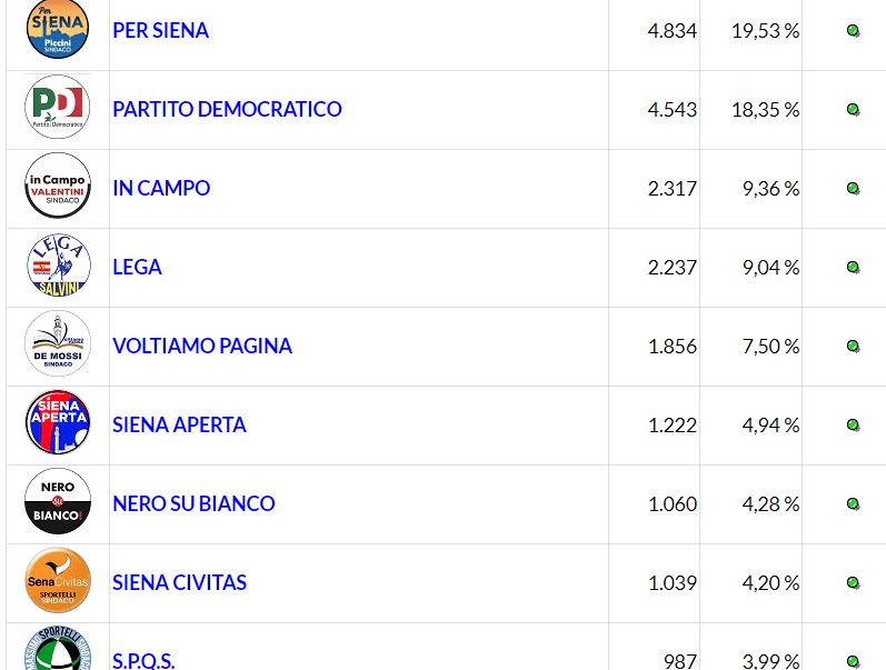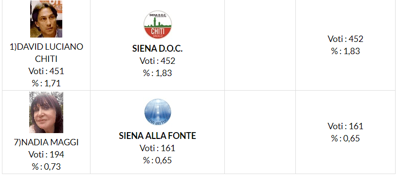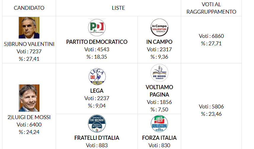 Si è chiuso lo spoglio delle 50 sezioni senesi per questo primo turno delle Amministrative. Questi i dati finali: