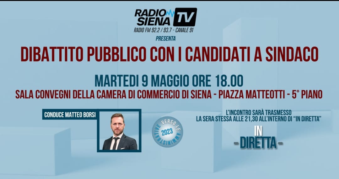 Si svolgerà oggi pomeriggio il dibattito pubblico tra i candidati a sindaco che Radio Siena Tv ha organizzato in vista delle elezioni amministrative del 14 e 15 maggio prossimi