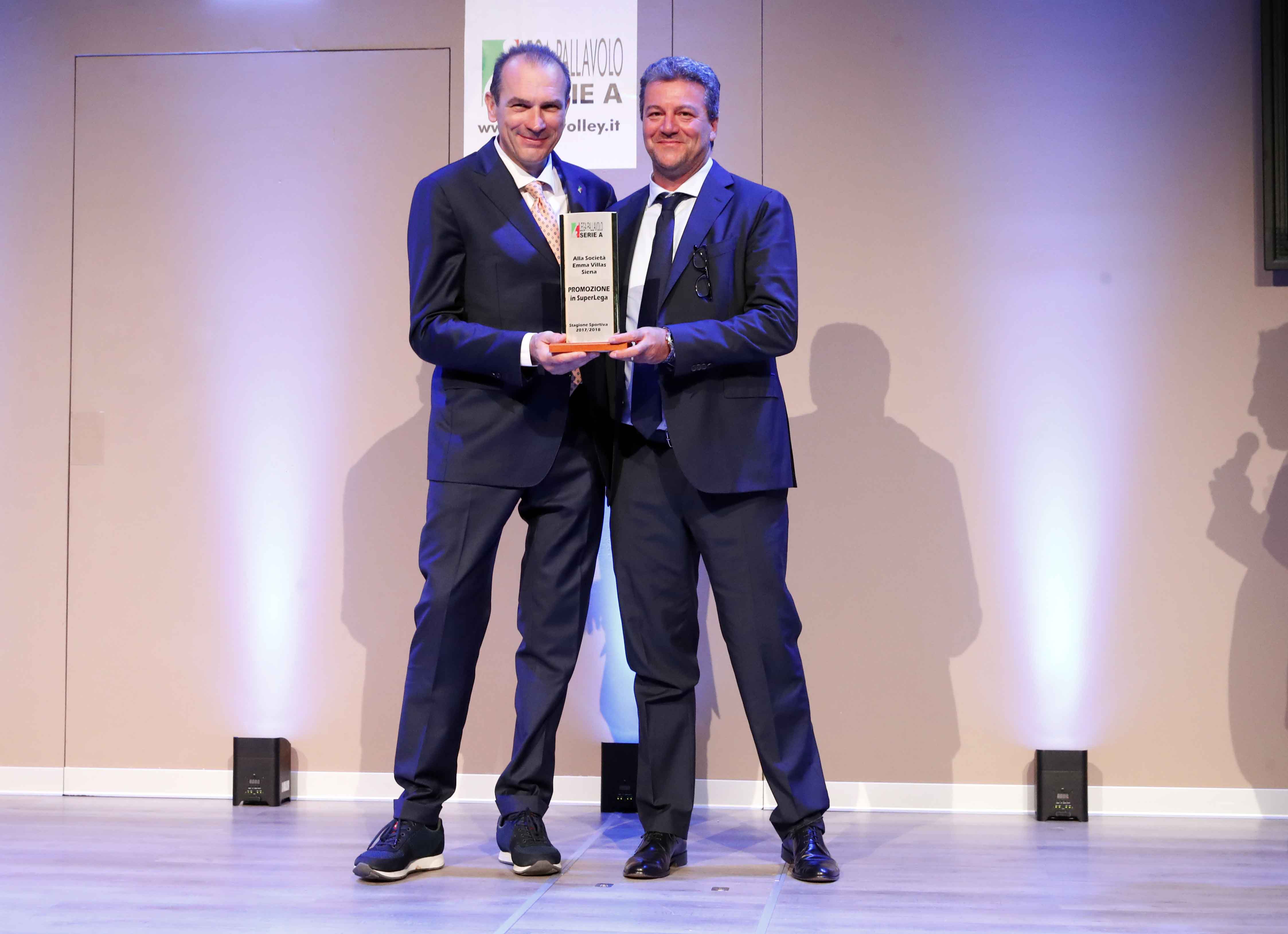 Nel corso della cerimonia “La prima battuta” la Emma Villas Siena è stata premiata per la vittoria dello scorso campionato di Serie A2 e per la promozione in Superlega. Sul palco è salito il Presidente Giammarco Bisogno, che ha ricevuto una onorificenza dall’amministratore delegato della Legavolley Massimo Righi. Il tutto dopo che un video aveva appena mostrato in sala molti degli attimi migliori della scorsa annata sportiva. “La passione è fondamentale per riuscire ad arrivare ai traguardi – ha dichiarato il massimo dirigente della società senese –. Sono molto felice di vivere questa giornata e questa premiazione. Voglio fare una dedica sentita a Marco Fabroni e agli altri ragazzi che sono stati straordinari e che hanno trasformato una situazione difficile in un trionfo fino a vincere otto partite su otto nei playoff”.
