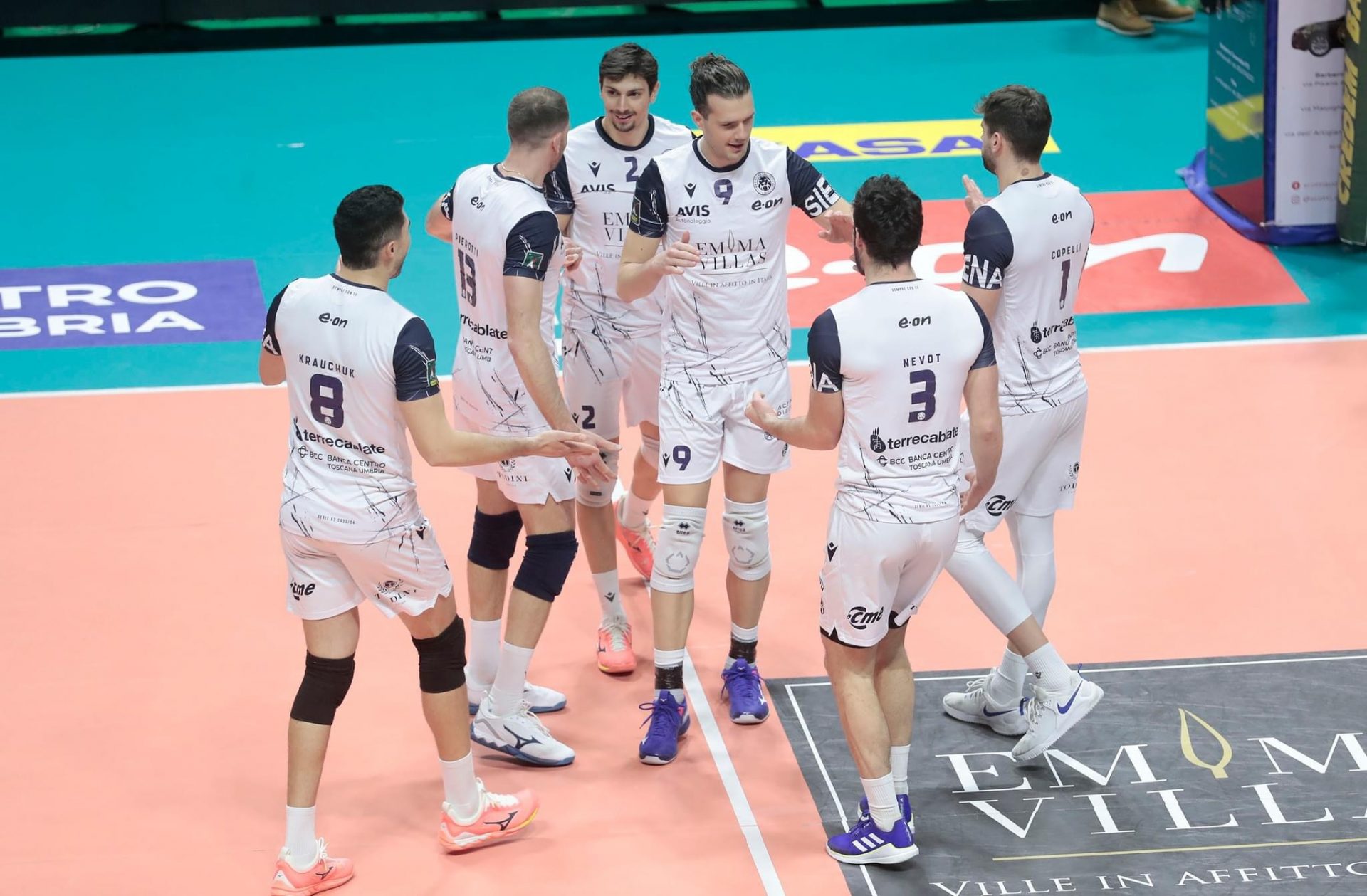 EMMA VILLAS SIENA: Copelli 8, Trillini 3, Nevot 3, Bonami (L), Tallone, Coser (L), Krauchuk 26, Milan 19, Gonzi, Acuti 2, Pierotti 12, Pellegrini, Ivanov, Picuno. Coach: Graziosi. Assistenti: Monaci, Passaponti.