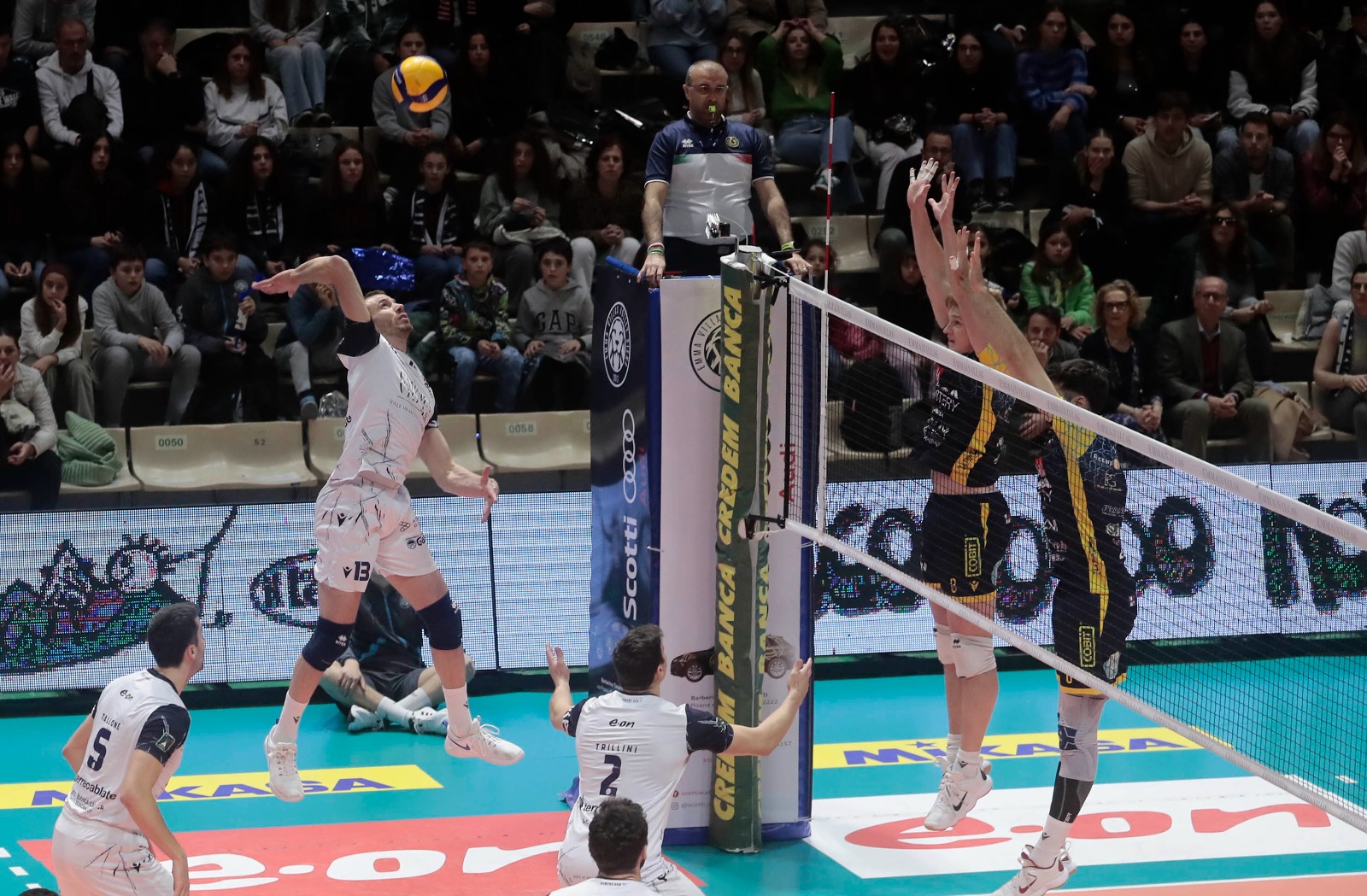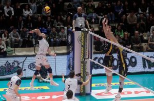 Attacchi vincenti per Pierotti e per Tallone, ma arriva anche un’altra murata vincente di Grottazzolina. La Yuasa Battery si porta sul 14-17 grazie ad alcuni buoni colpi dell’opposto danese Nielsen: coach Gianluca Graziosi chiama time out per parlare con i suoi giocatori. Intanto in campo c’è Sebastiano Milan al posto di Matheus Krauchuk.