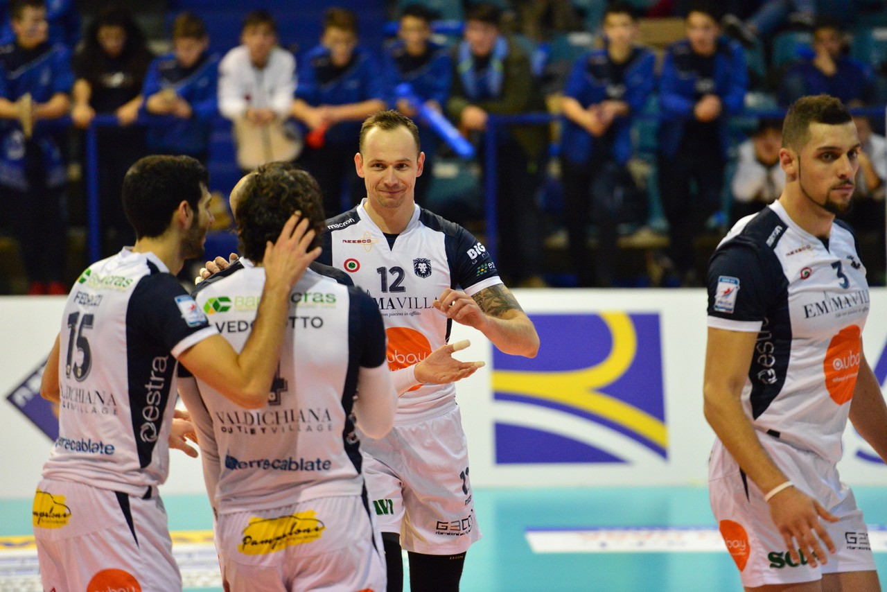 La Emma Villas ha vinto per tre set a zero in un’ora e trentuno minuti di partita, un successo che permette ai senesi di centrare la qualificazione alla semifinale dove l’avversaria sarà la Caloni Agnelli Bergamo, che è stata in grado di sbancare un altro campo difficile come quello della Videx Grottazzolina. La semifinale verrà disputata in gara secca in Lombardia: il calendario fissa questa sfida al prossimo giovedì 21 dicembre ma la partita potrebbe essere anticipata al giorno precedente, mercoledì 20 dicembre. I senesi hanno compiuto una vera impresa al PalaMalè, e coach Juan Manuel Cichello ha iniziato con il piede giusto la sua avventura sulla panchina della Emma Villas. Ottima in campo è stata la prestazione dell’opposto slovacco Martin Nemec, autore di 19 punti (e tra questi anche quello che ha chiuso la sfida) e capace di terminare l’incontro con una percentuale offensiva del 57%.