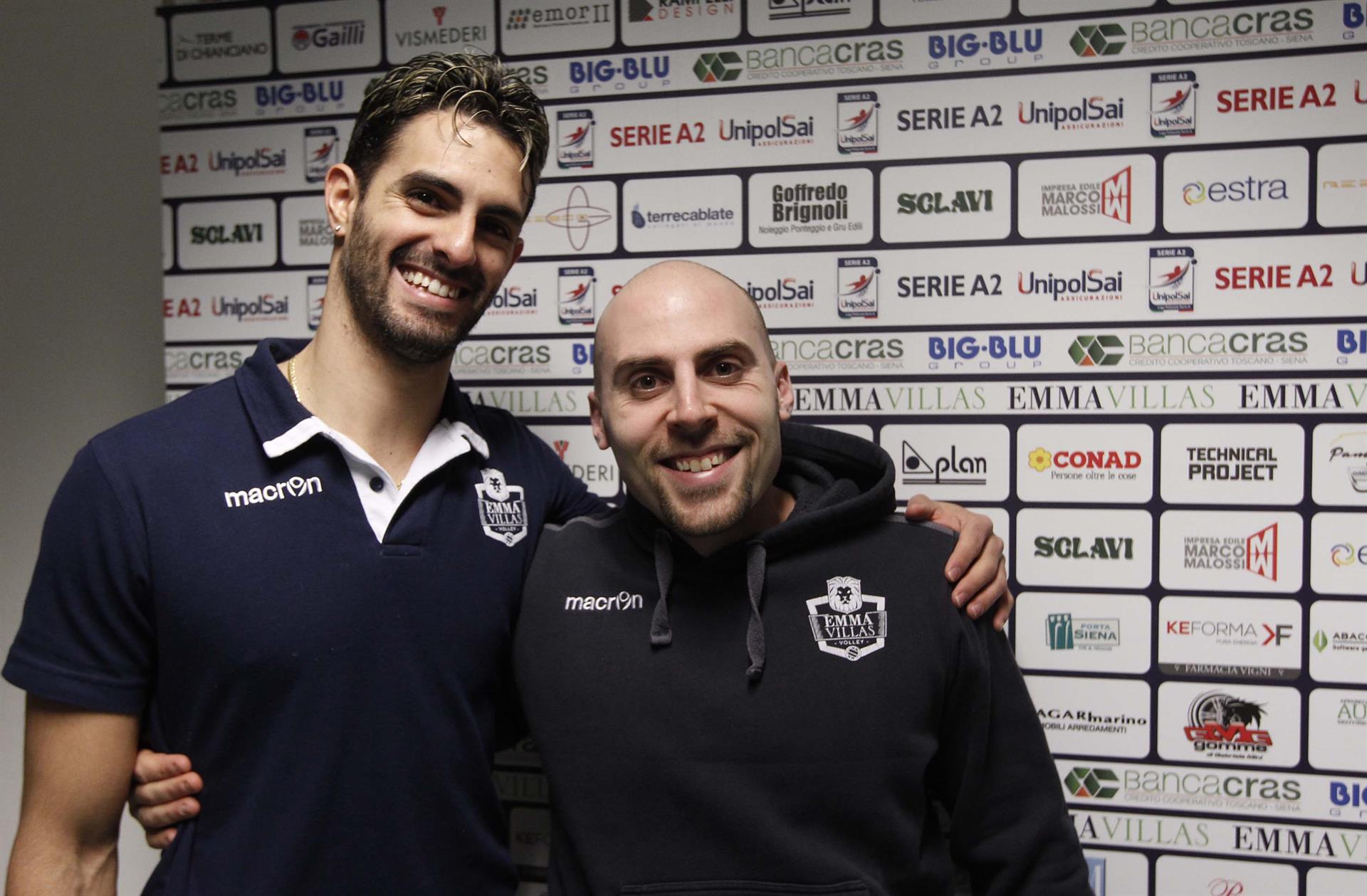 Lo schiacciatore spagnolo della Emma Villas Siena, Sergio Noda Blanco, ed il liberoAndrea Cesarini guardano con ottimismo alla prossima sfida di campionato contro la Monini Spoleto, che si giocherà al PalaEstra senese in viale Sclavo domenica 26 febbraio alle ore 18 (un match che sarà sponsored by Technical Project) e che sarà valida per la quinta giornata della Pool Promozione.