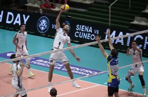 Terzo setAlan è strepitoso anche in avvio di terzo parziale, il brasiliano schiaccia con forza il punto del 5-3. Colpisce anche Randazzo dopo una buona difesa senese, punto break per Siena (6-3). Bel punto di Brignach per la formazione ospite: 10-7. Brignach protagonista anche nell’azione seguente, con un muro vincente che porta gli ospiti sul -2: 10-8. Allik pareggia: 10-10. Brignach completa la rimonta: 10-11. Coach Graziosi fa alzare Alpini dalla panchina, prende il posto di Randazzo. Alan mette a segno il cambio palla: 11-11. Il brasiliano mette giù un punto di pregevole fattura per il controsorpasso senese (14-13). La gara è equilibratissima, risponde Sette (14-14). Allik guida i suoi in un nuovo break, Cuneo avanti di tre lunghezze (16-19).