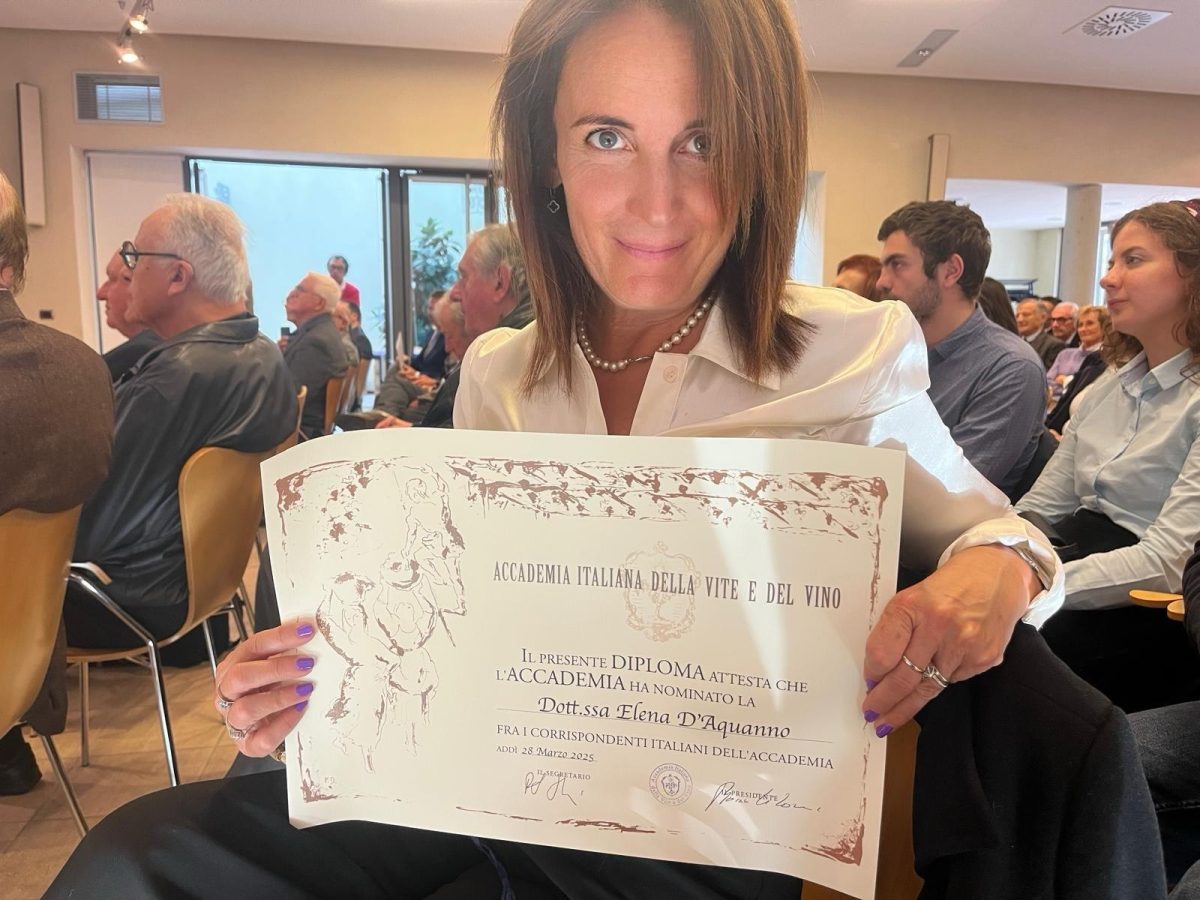“Sono profondamente grata all’Accademia Italiana della Vite e del Vino, al Presidente Prof. Rosario Di Lorenzo ed a tutti i componenti che hanno pensato a me e mi hanno insignito di questo prestigioso riconoscimento, ha affermato la Presidente Elena D’Aquanno. E’ una nomina che mi riempie di gioia ed onore. Un sigillo che mi lega ancor di più a mio nonno che fece di questo settore la sua vita, la sua professione e la sua passione, iniziando il suo percorso nel 1909 con la Distilleria Pietro Duina ad Ovada”.