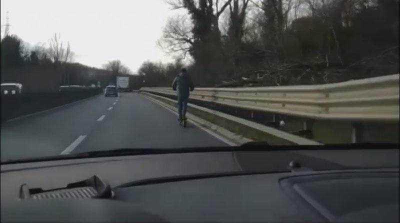 Nel pomeriggio di Venerdì 21 Febbraio, nella Siena-Firenze, è stato ripreso un soggetto a bordo di un monopattino elettrico che percorreva la strada lungo il margine destro della carreggiata. Gli automobilisti increduli, oltre a riprendere la situazione, hanno immediatamente avvertito le forze dell’ordine.