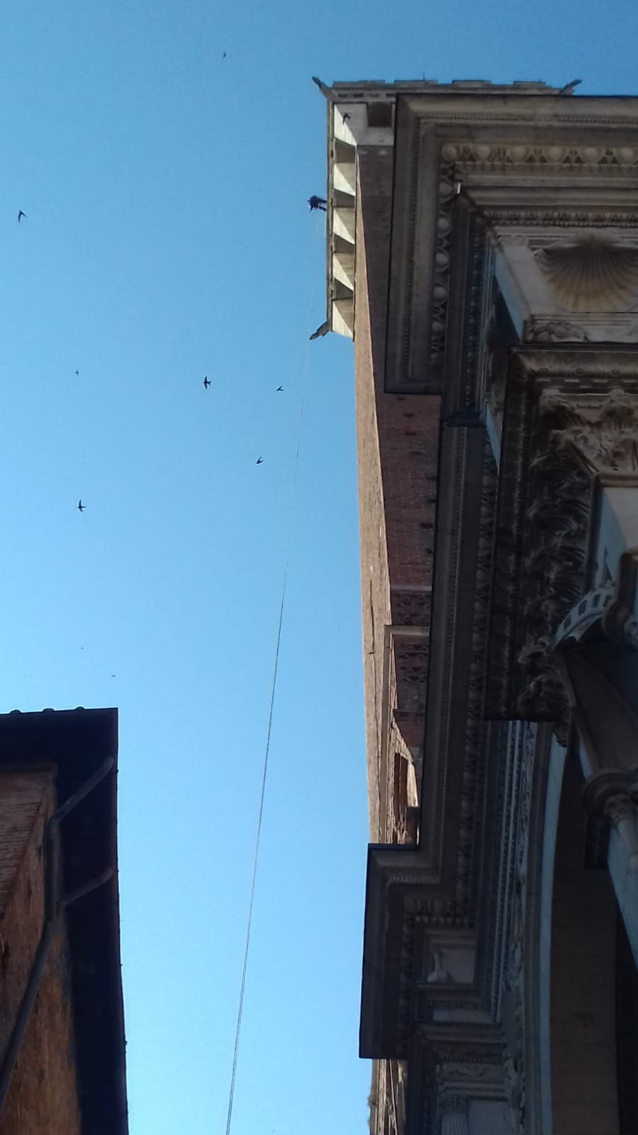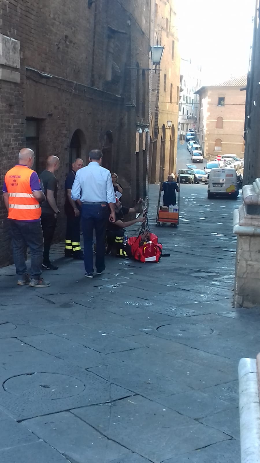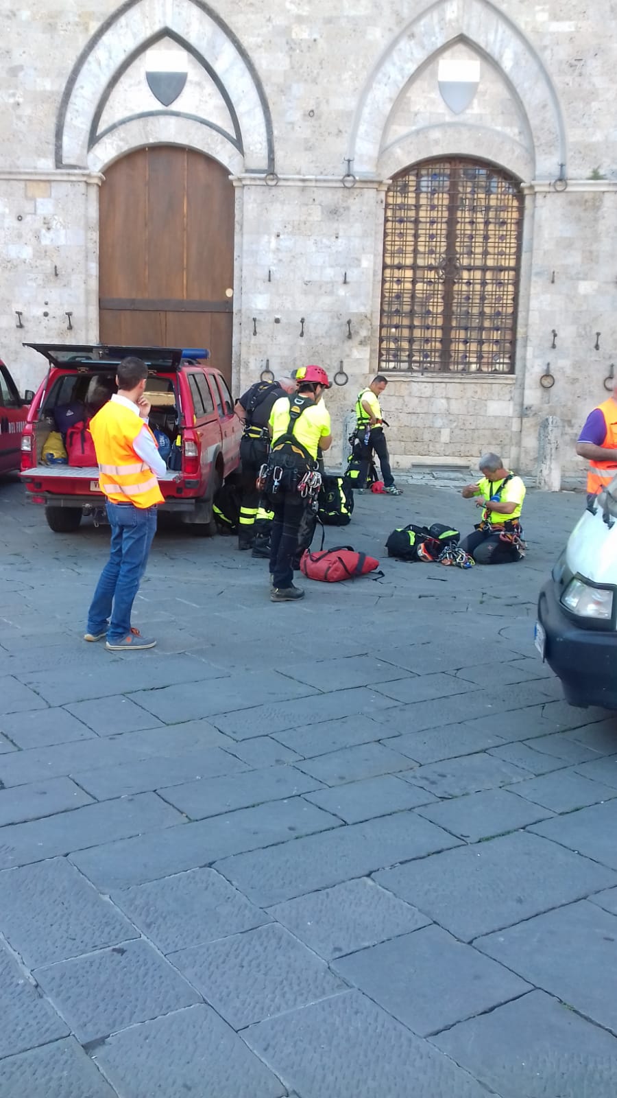 Nella mattinata di oggi il personale del Comando Provinciale Vigili del Fuoco di Siena ha preso parte, in collaborazione con l’amministrazione comunale, ad un’esercitazione per calare il soccorso di un turista in cima alla Torre del Mangia.