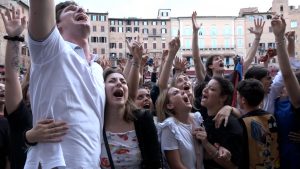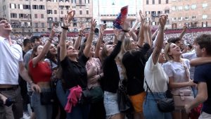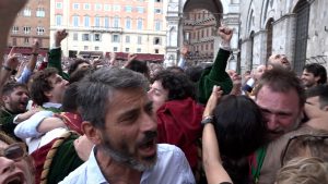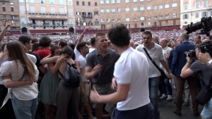Baci, abbracci, lacrime. Di gioia e di delusione. Sono tante le emozioni che si sono mischiate in una Piazza del Campo gremitissima, che ha sfidato la pioggia e, all’occorrenza, ha aperto gli ombrelli colorati, rimanendo lì per assistere alla “storica” estrazione delle contrade, che ieri ha avuto un sapore ed un significato unico, bellissimo, irripetibile. Per tutti. Nella nostra gallery alcuni momenti salienti di questa giornata.