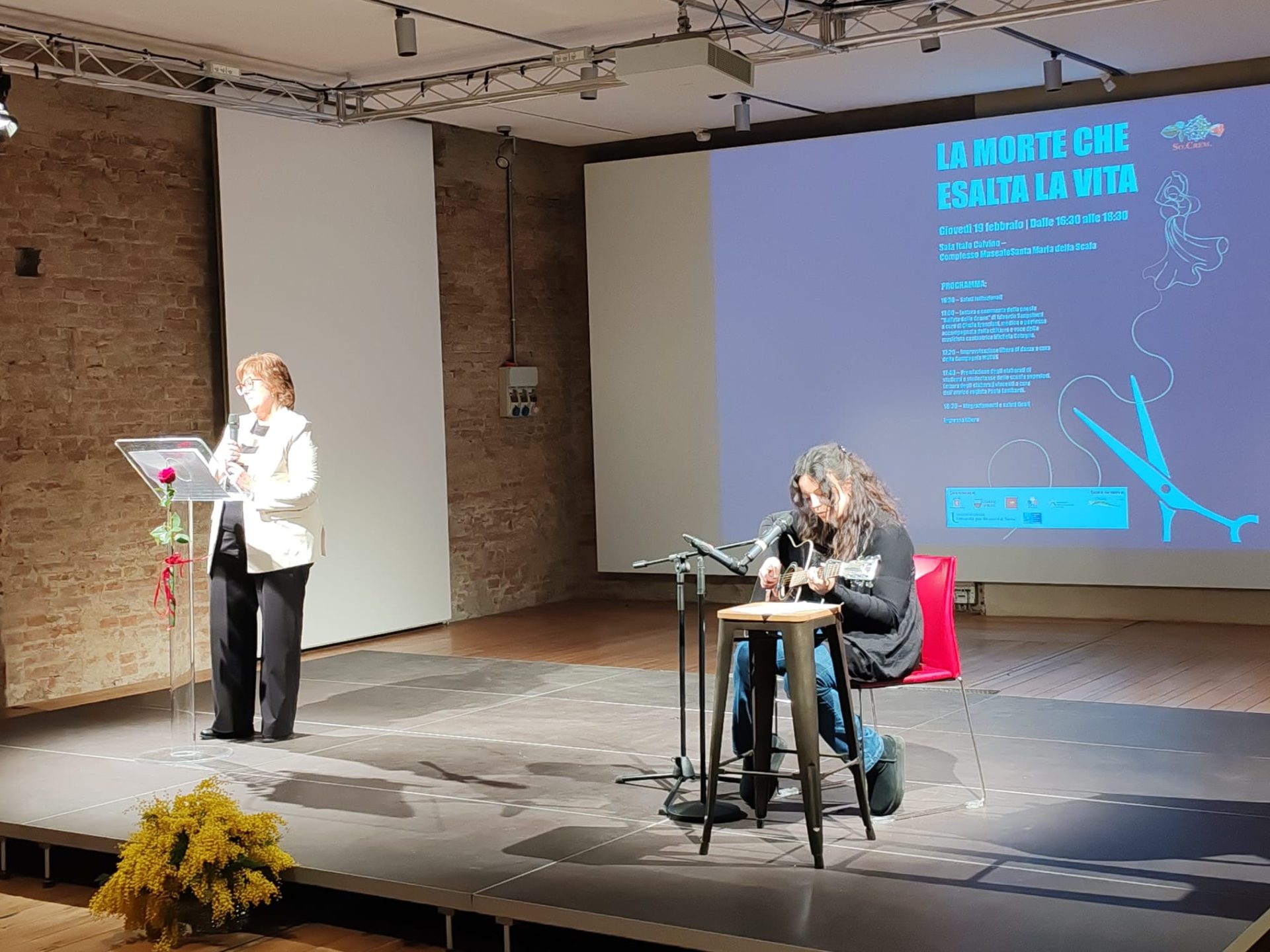 La toccante lettura della poetessa Cinzia Francioli de la “Ballata delle donne” di Edoardo Sanguineti, accompagnata dalla delicata voce e musica di Michela Cotugno. L’emozionante performance di danza di Motus, i profondi e incisivi lavori degli studenti delle scuole sul tema del lutto e della morte. Un concentrato di arte, musica, poesia, gioventù e riflessione l’evento promosso da Socrem Siena, “La morte che esalta la vita”, andato in scena giovedì pomeriggio alla sala Italo Calvino del Santa Maria della Scala. Era il secondo grande appuntamento organizzato dalla società per la cremazione, con l’intento di stimolare il dibattito e il confronto su temi etici e civili coinvolgendo i più giovani, per formare consapevolezza e abbattere i muri del tabù. Ad aprire l’evento – in una sala gremita – sono stati i saluti del presidente di Socrem Marco Tognetti, dettosi soddisfatto della partecipazione e della resa dell’iniziativa.