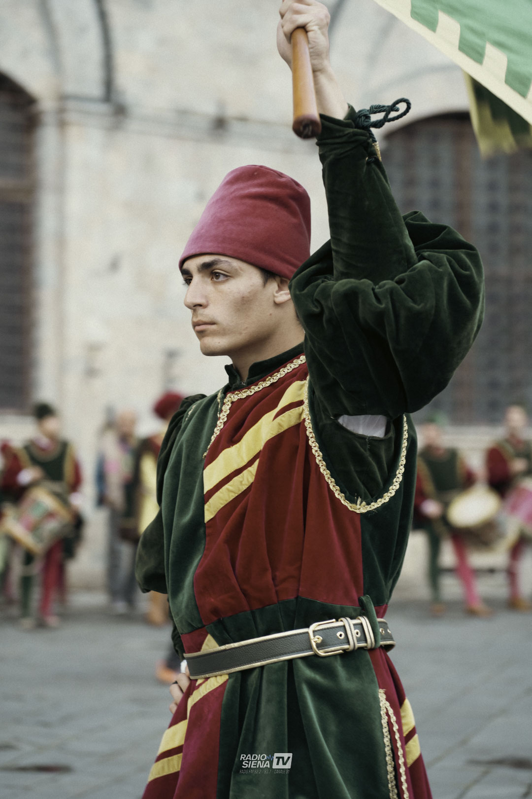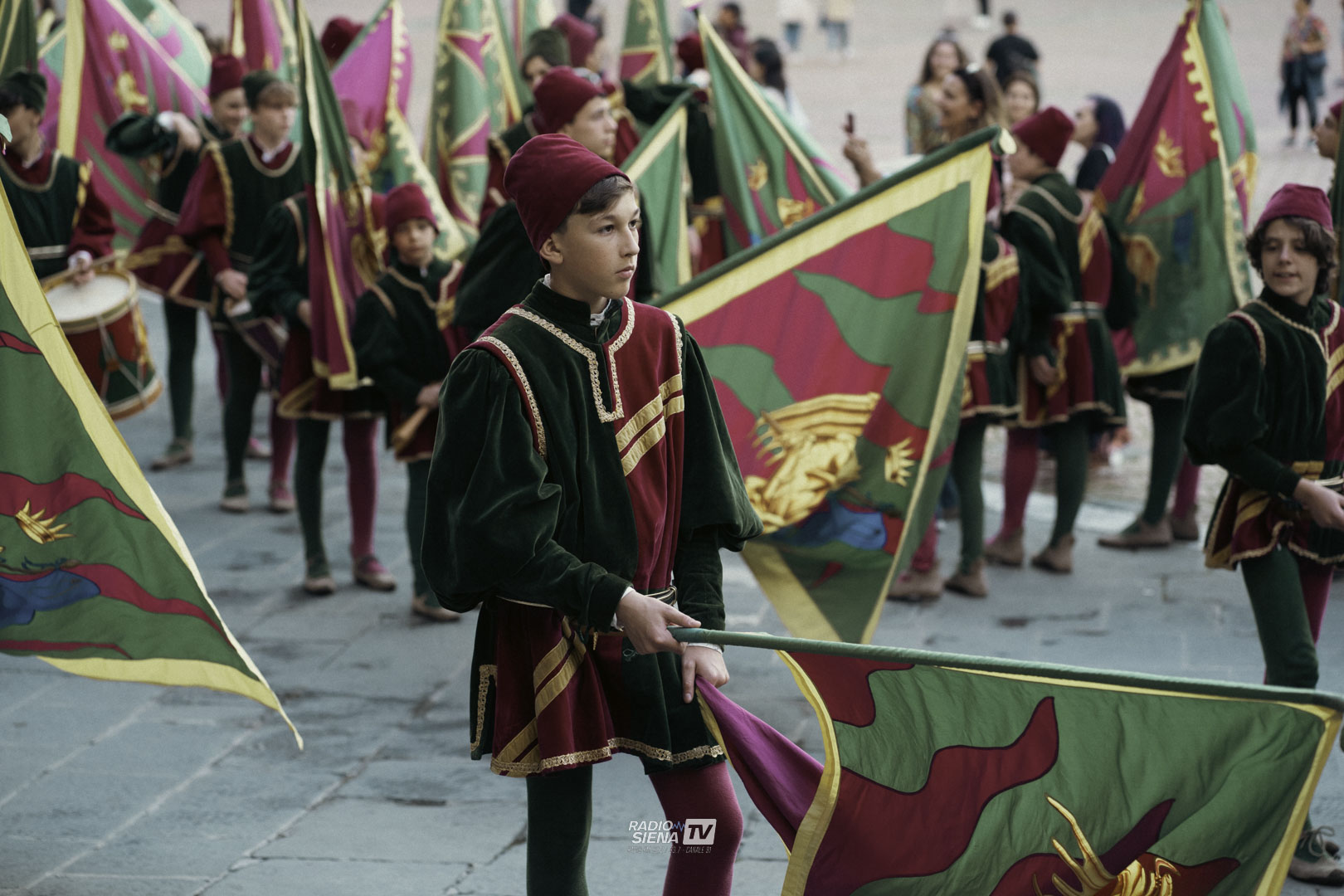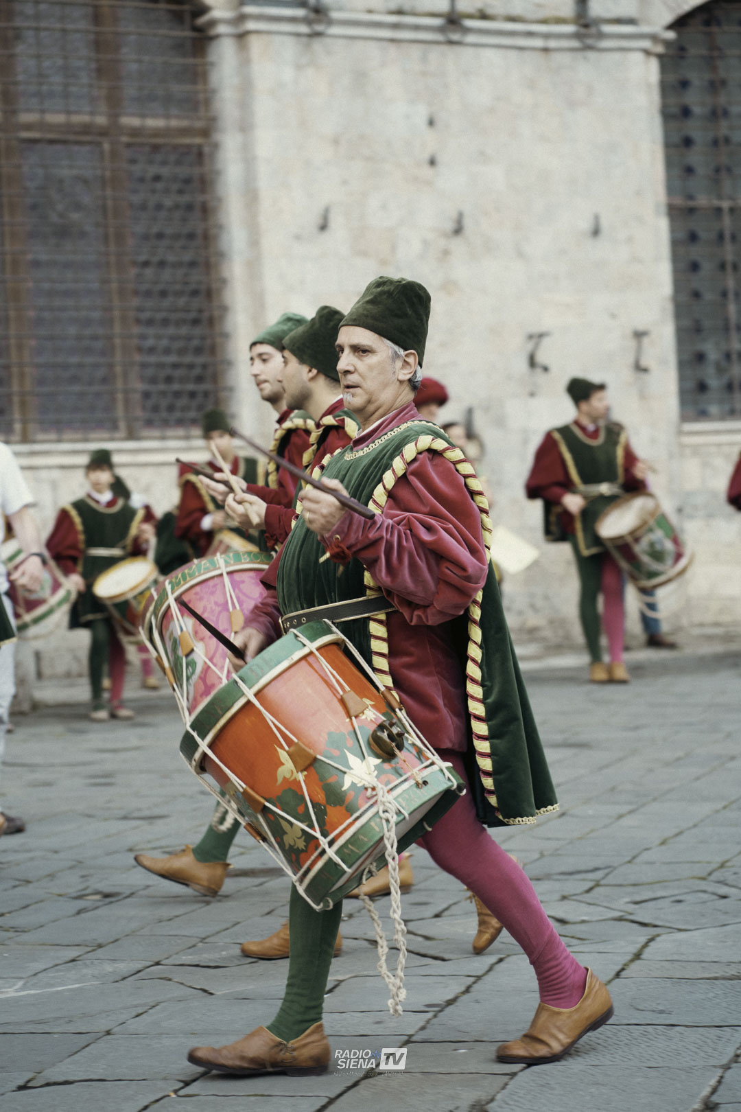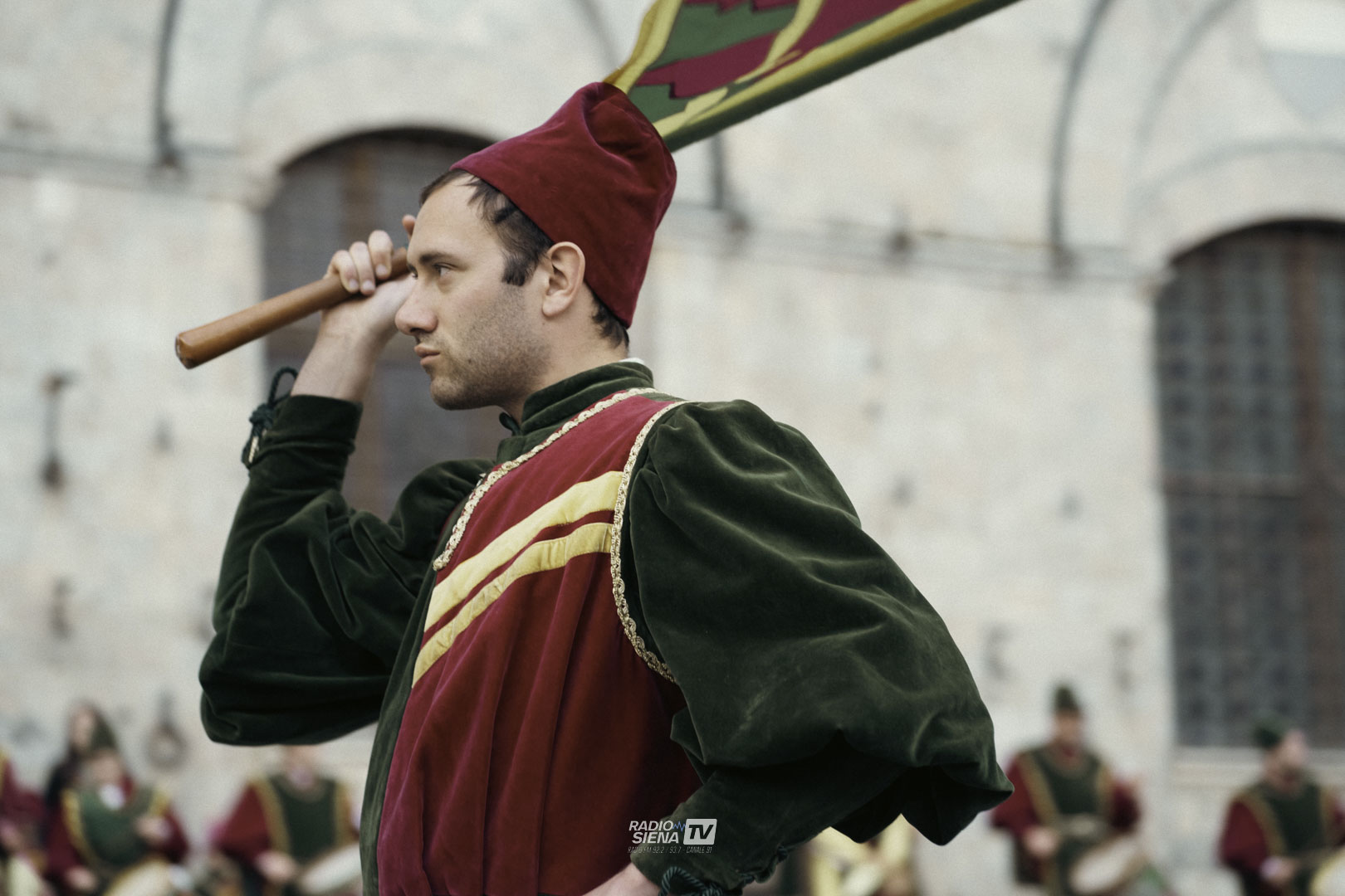 Le bandiere e i tamburi della contrada del Drago hanno invaso la città in occasione della Festa Titolare che si è celebrata ieri. Nella nostra gallery alcuni scatti della comparsa di Camporegio che, nonostante uno stop causa pioggia, nel tardo pomeriggio è arrivata in Piazza del Campo per poi fare ritorno in contrada.