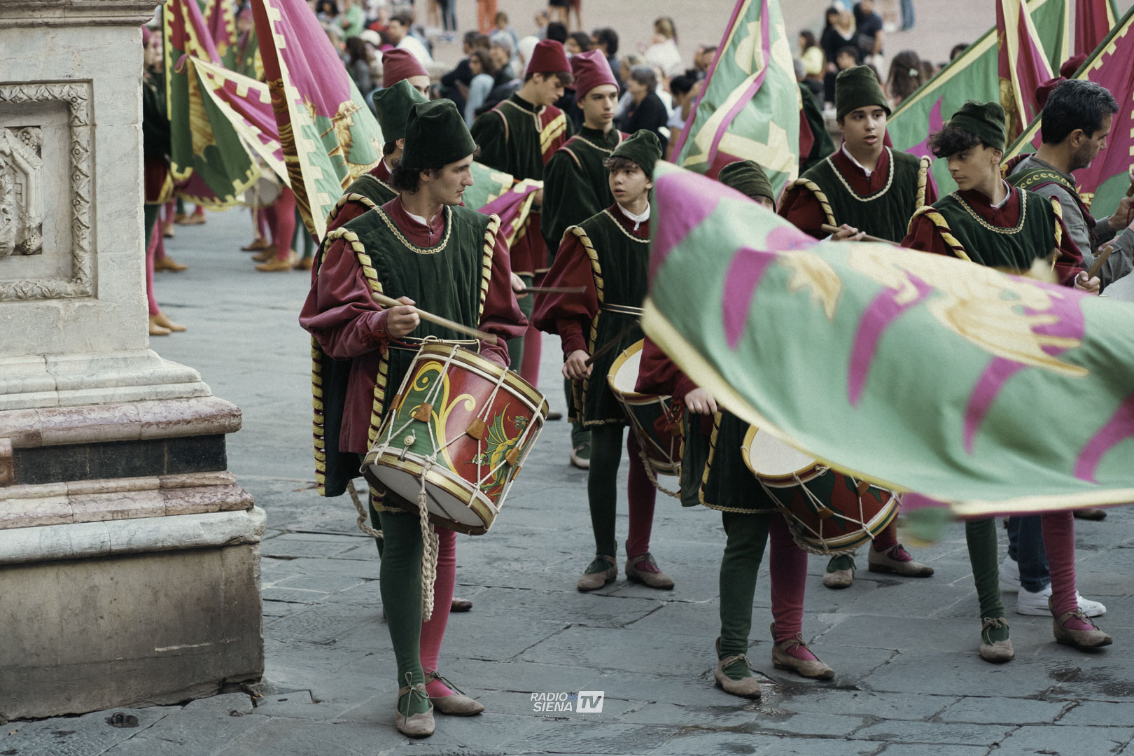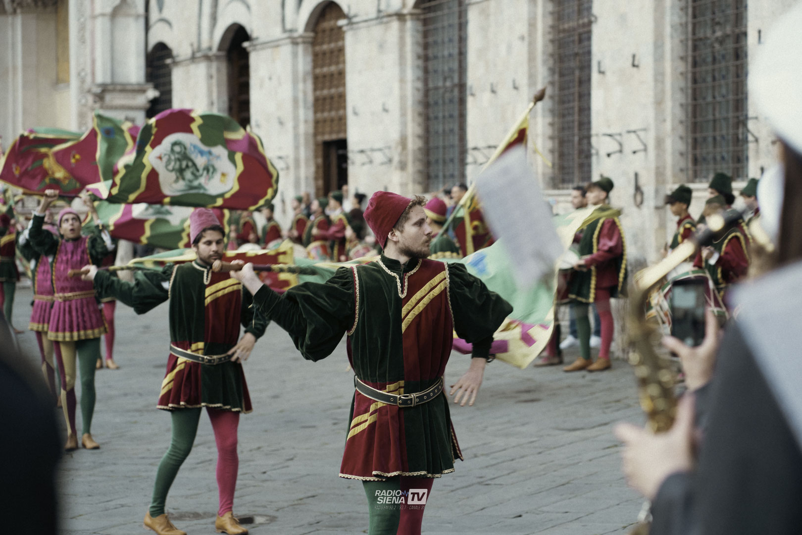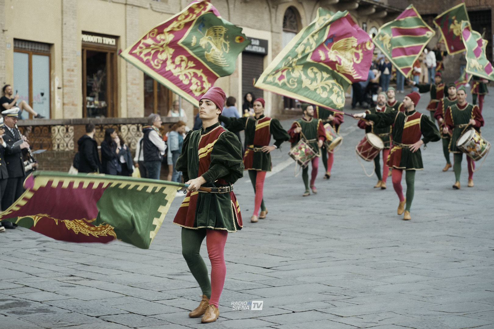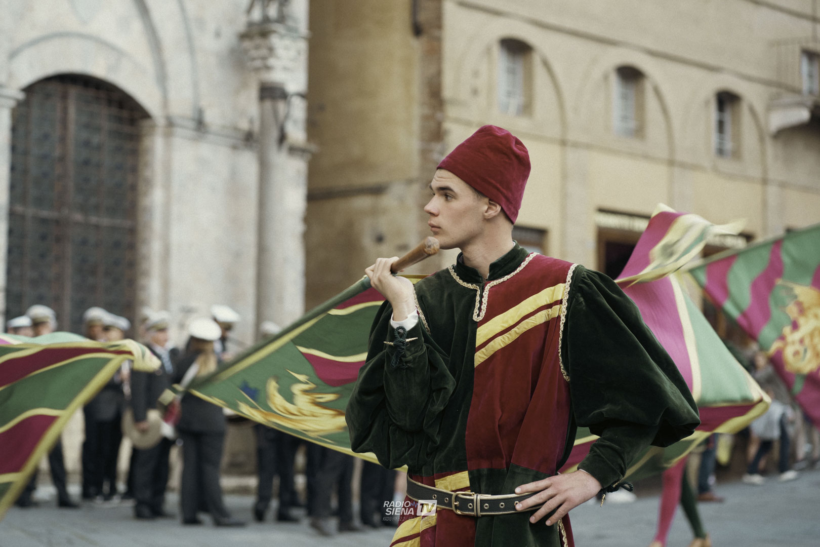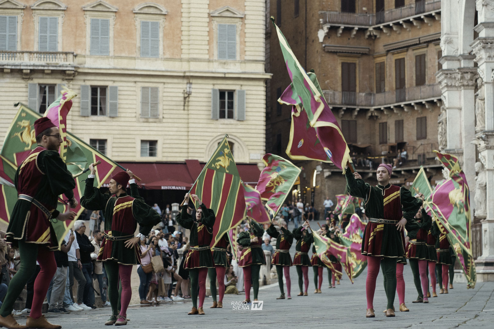 Le bandiere e i tamburi della contrada del Drago hanno invaso la città in occasione della Festa Titolare che si è celebrata ieri. Nella nostra gallery alcuni scatti della comparsa di Camporegio che, nonostante uno stop causa pioggia, nel tardo pomeriggio è arrivata in Piazza del Campo per poi fare ritorno in contrada.