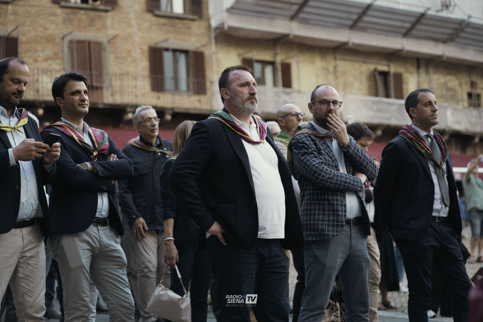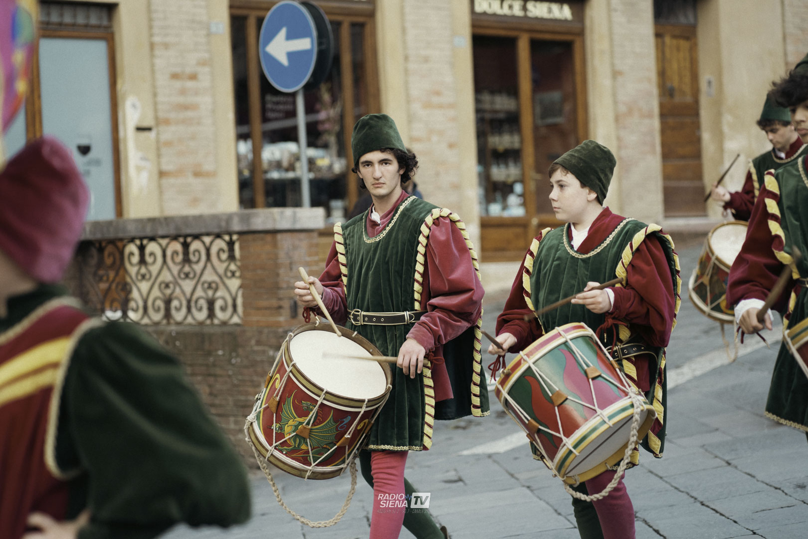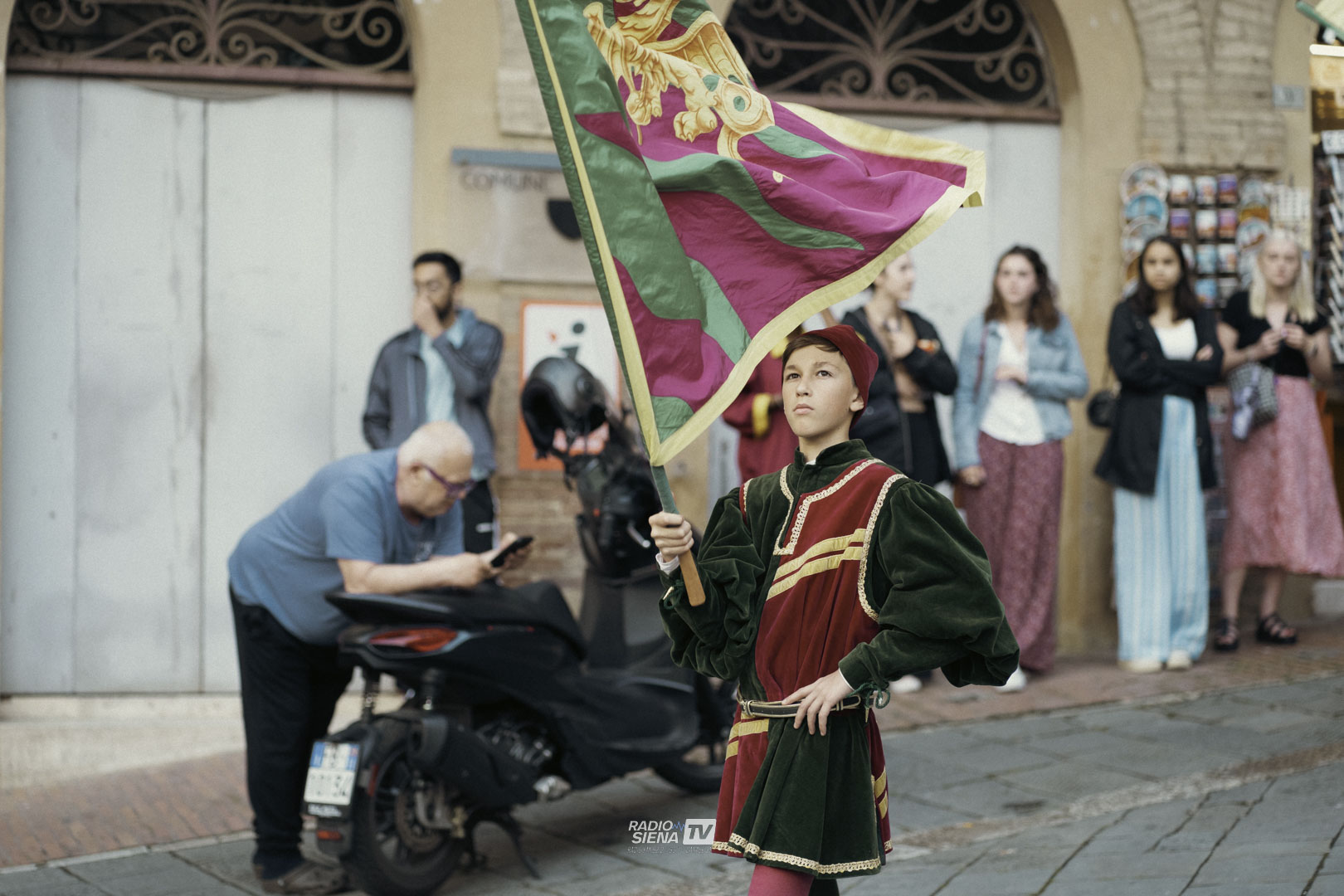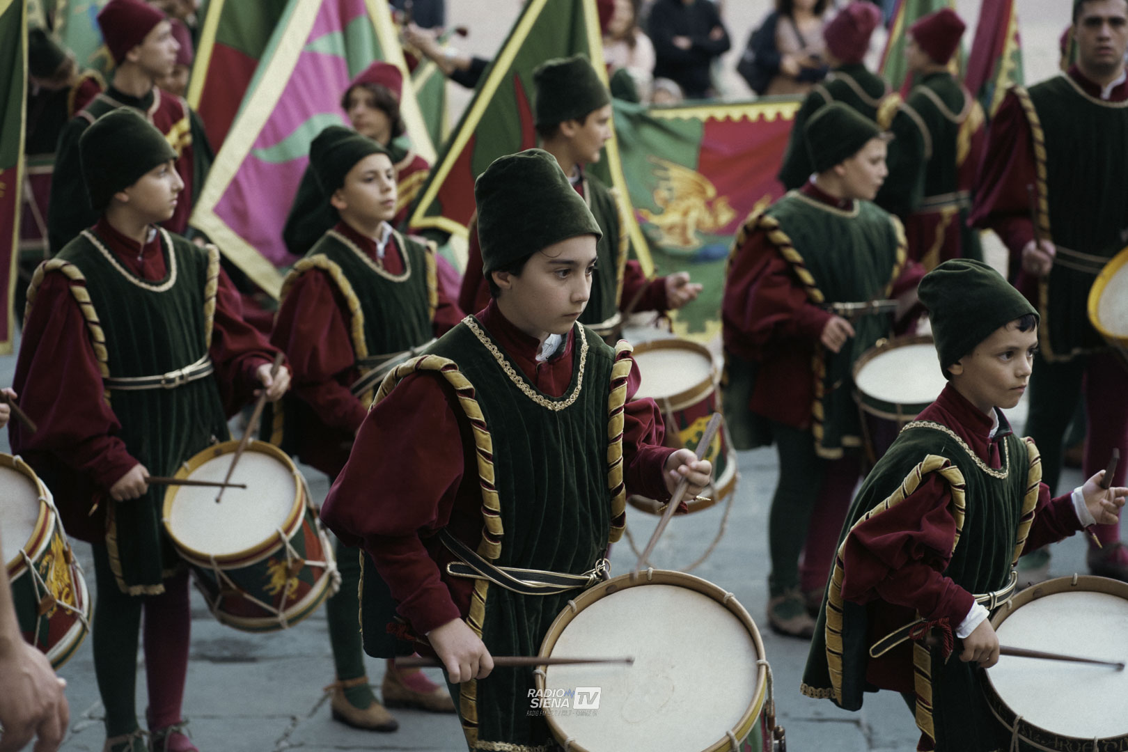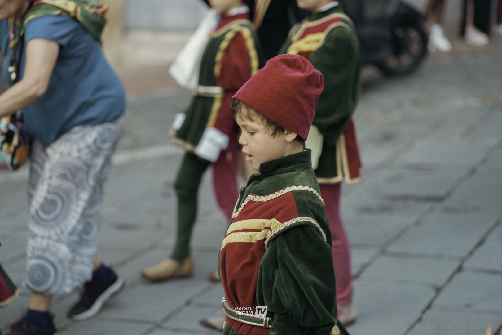Le bandiere e i tamburi della contrada del Drago hanno invaso la città in occasione della Festa Titolare che si è celebrata ieri. Nella nostra gallery alcuni scatti della comparsa di Camporegio che, nonostante uno stop causa pioggia, nel tardo pomeriggio è arrivata in Piazza del Campo per poi fare ritorno in contrada.