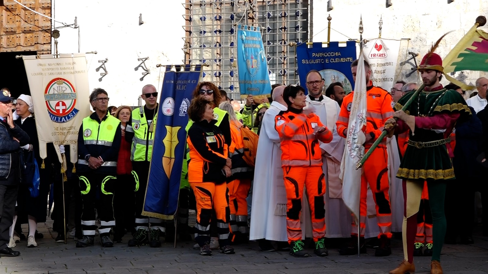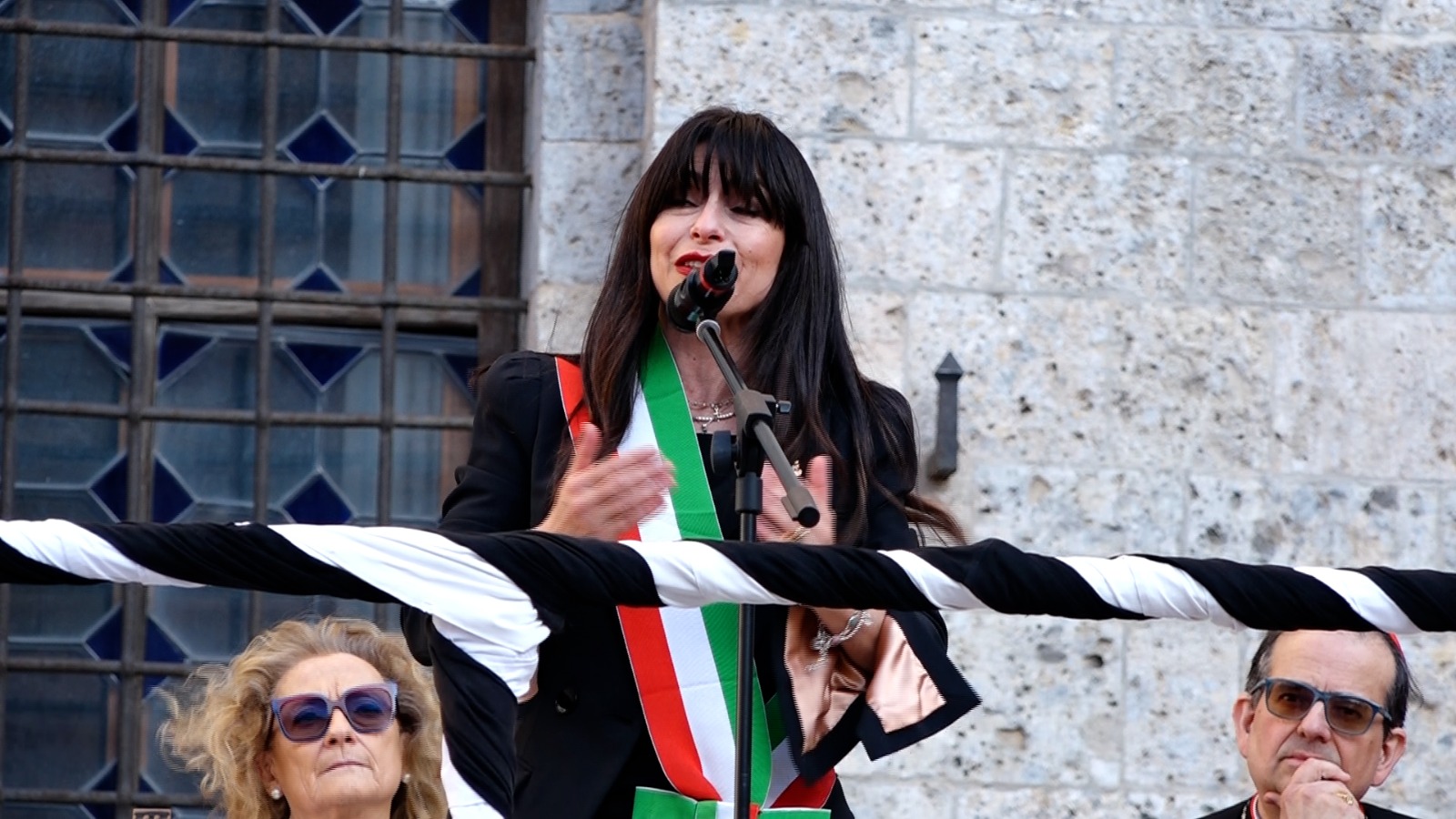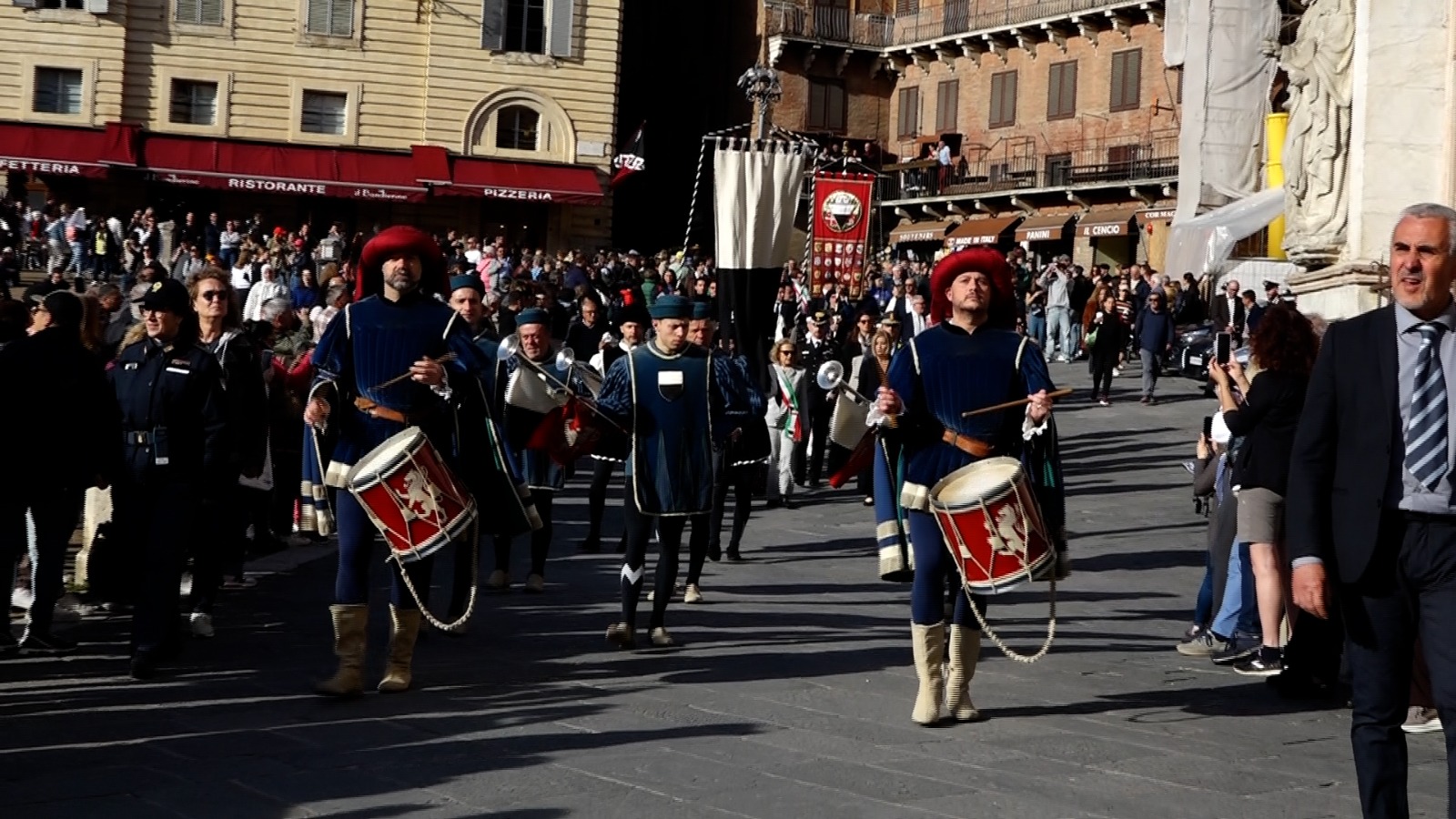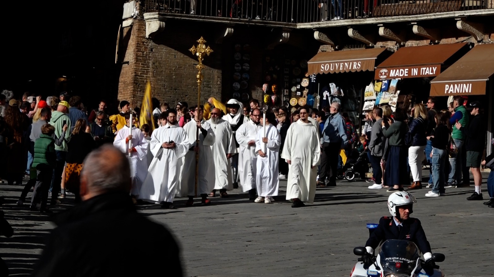 Pomeriggio di celebrazioni per le feste cateriniane che si stanno avviando al termine. Dopo la messa con la “conferma del credo” ai cresimati e cresimandi dell’arcidiocesi presieduta da monsignor Lorenzo Leuzzi, vescovo di Teramo, e concelebrata dal cardinale Augusto Paolo Lojudice, arcivescovo di Siena, nella basilica di San Domenico la celebrazione si è spostata in Piazza del Campo dove hanno parlato Lojudice e Leuzzi, il sindaco Nicoletta Fabio, e Stefania Proietti, sindaco di Assisi. Quindi la benedizione con la reliquia della Santa alla città, all’Arcidiocesi, all’Italia e all’Europa e la sbandierata finale delle contrade.