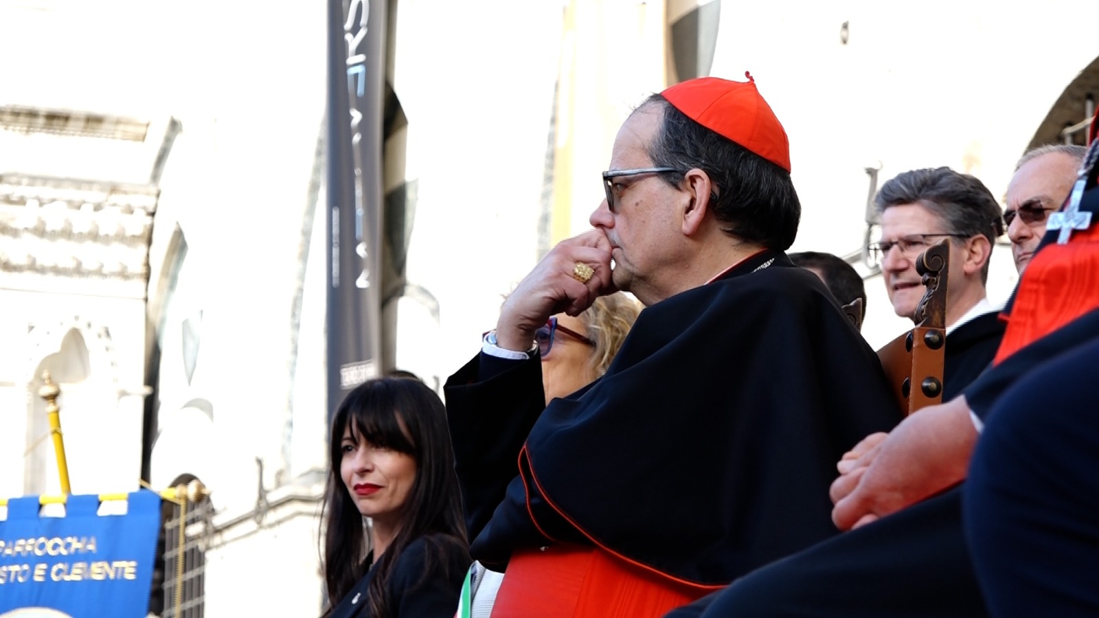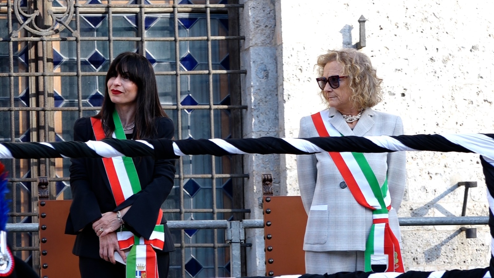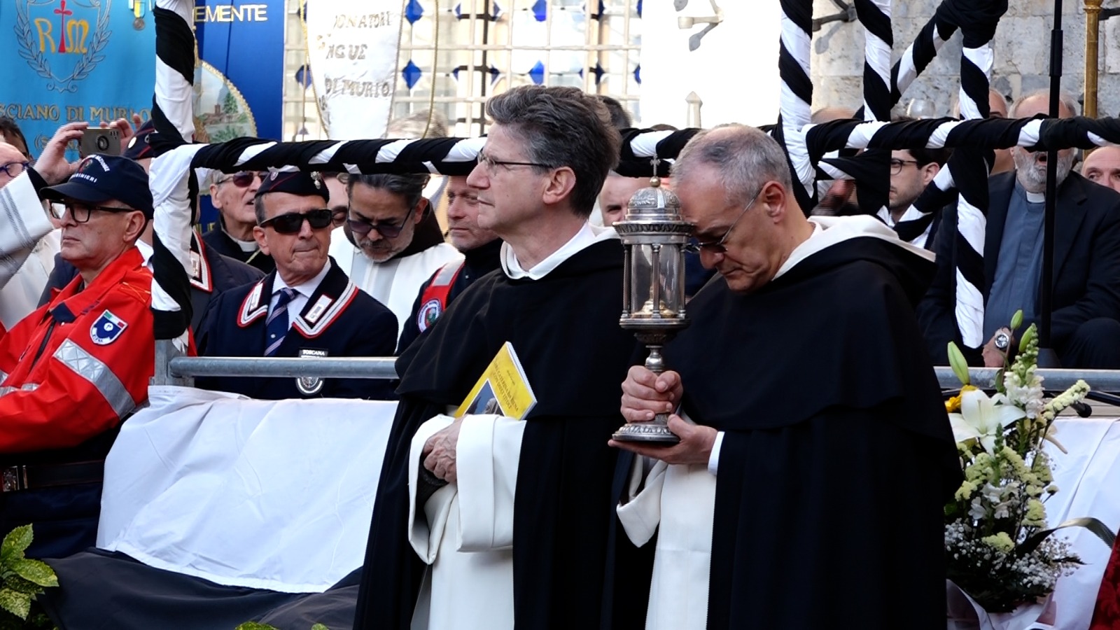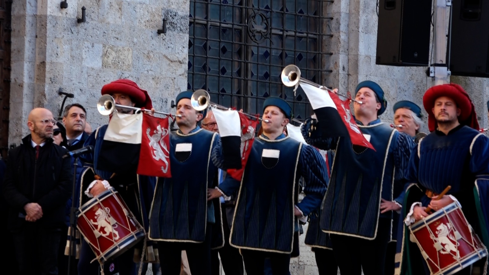 Pomeriggio di celebrazioni per le feste cateriniane che si stanno avviando al termine. Dopo la messa con la “conferma del credo” ai cresimati e cresimandi dell’arcidiocesi presieduta da monsignor Lorenzo Leuzzi, vescovo di Teramo, e concelebrata dal cardinale Augusto Paolo Lojudice, arcivescovo di Siena, nella basilica di San Domenico la celebrazione si è spostata in Piazza del Campo dove hanno parlato Lojudice e Leuzzi, il sindaco Nicoletta Fabio, e Stefania Proietti, sindaco di Assisi. Quindi la benedizione con la reliquia della Santa alla città, all’Arcidiocesi, all’Italia e all’Europa e la sbandierata finale delle contrade.