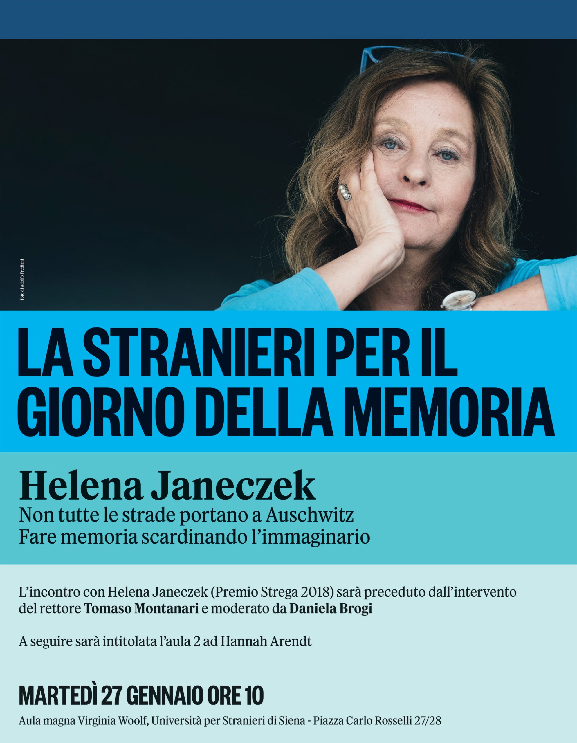 Ospite dell’iniziativa sarà Helena Janeczek, scrittrice e voce autorevole della letteratura e della cultura italiana ed europea. Dopo l’intervento introduttivo del rettore Tomaso Montanari, Janeczek terrà una riflessione dal titolo “Non tutte le strade portano a Auschwitz. Fare memoria scardinando l’immaginario”, proponendo un approccio critico e non stereotipato al tema della memoria della Shoah. Seguiranno letture tratte dalle sue opere. L’incontro sarà moderato da Daniela Brogi.