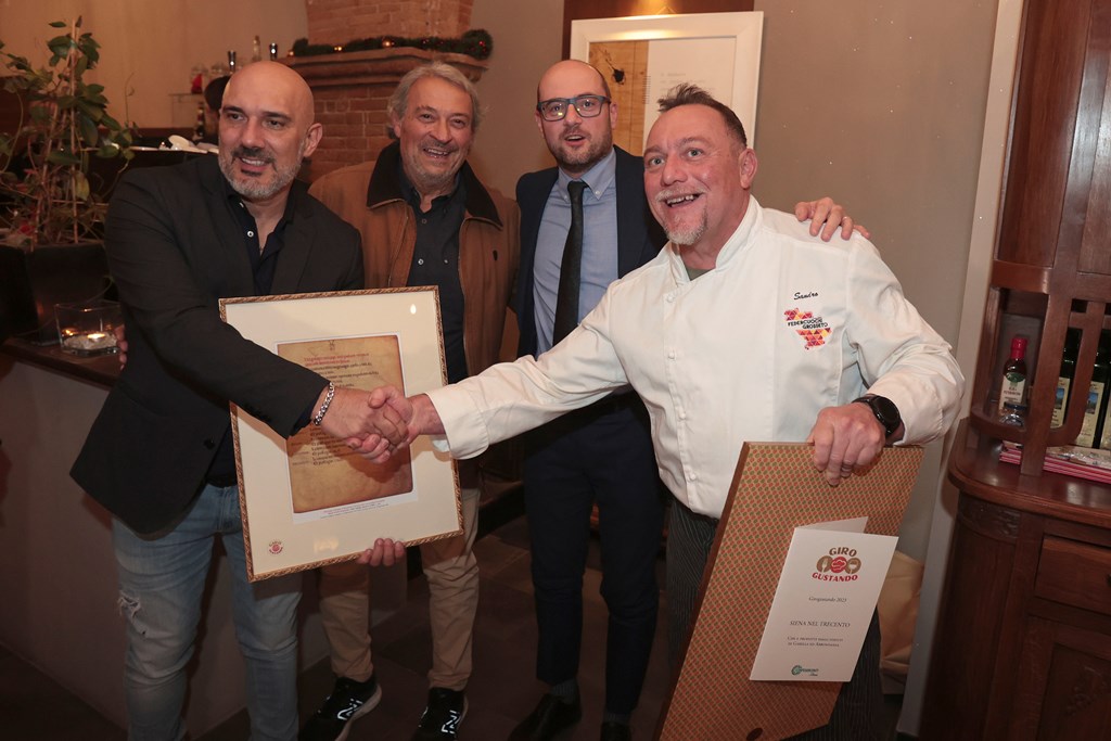 Ventisei eventi tra cooking lesson, food lesson e soprattutto menu a 4 mani, sparsi tra le provincie di Siena, Grosseto e Livorno. Trentasette cuochi, due istituti alberghieri, trenta cantine e due Consorzi di produzione vinicola. Sono alcuni dei numeri di chiusura per l’annata 2023 di Girogustando, la rassegna di esperienze “a 4 mani” ideata da Confesercenti. Con l’incontro del 13 dicembre al ristorante Fuoriluogo di San Gimignano, ospite l’Enoristorante Boccaccio di Gavorrano sì è conclusa la 22esima edizione di una manifestazione che ha nuovamente abbinato scambio di conoscenze tra professionisti della ristorazione e inedite esperienze sensoriali per il pubblico. Nell’ultima serata molti consensi sono andati agli “Agnolotti di rana pescatrice con burro chiarificato, peperoncino e menta” presentati da Sandro Signori, chef del Boccaccio, ed alla “Costatina di cinta senese a bassa temperatura, salsa allo zafferano ed erbette” servita dal resident chef, Mauro Francone. Tra gennaio e dicembre 2023, sotto il marchio di Girogustando sono state realizzate una food lesson e due cooking lesson sul tortello maremmano, due interpretazioni dei menu a 4 mani da parte degli allievi dell’Istituto Alberghiero Artusi di Chianciano Terme e 22 menu serali a 4 mani. “Una formula rodata che continua ad appassionare – ha affermato il Sindaco di San Gimignano Andrea Marrucci al termine della serata finale – l’incontro tra persone e cultura favorisce un dialogo che solitamente è la premessa per cose importanti”. “L’asticella si è ulteriormente alzata anche quest’anno – ha aggiunto il Presidente di Confesercenti Siena, Leonardo Nannizzi – sia per impegno e professionalità dei cuochi, che per la qualità del servizio e dei prodotti”.