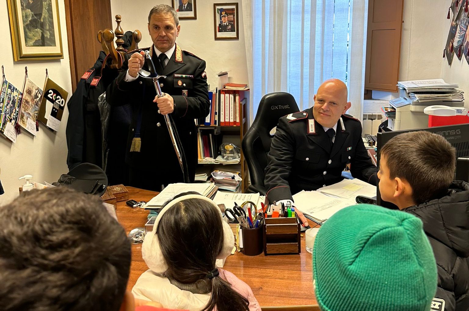 Lo scopo del progetto è stato quello di avvicinare i bambini alla conoscenza delle Forze dell’Ordine, trasformando la caserma in un luogo di dialogo, scoperta e apprendimento. I militari presenti – tra cui il Comandante Luigi Polimanti e i suoi colleghi della Stazione Carabinieri Siena Centro e della Sezione Radiomobile Maresciallo Edoardo Ottaviani, Vice Brigadieri Alessandro Rossi e Raffaele Esposito, l’Appuntato Scelto Marco Serrano e i Carabinieri Simone Daidone, Serena Zago e Michela Ferrazzano – hanno dedicato il loro tempo per rispondere a tutte le domande, mostrando ogni dettaglio del loro lavoro e trasmettendo il valore del rispetto per le regole e per le istituzioni.