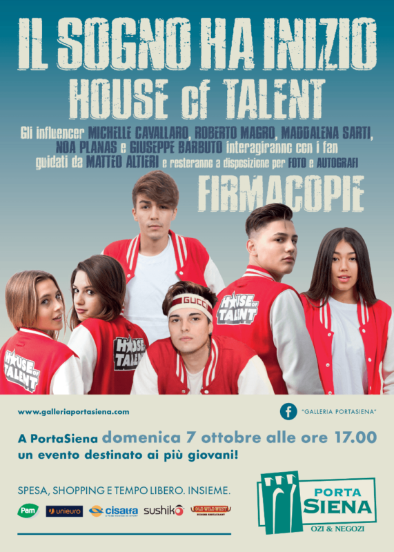 Sono gli influencer più richiesti del momento: Michelle Cavallaro, Roberto Magro, Noa Planas, Giuseppe Barbuto e Maddalena Sarti incontreranno i fans per foto e autografi dalle 17 di domenica 7 ottobre 2018 alla Galleria PortaSiena a Siena.