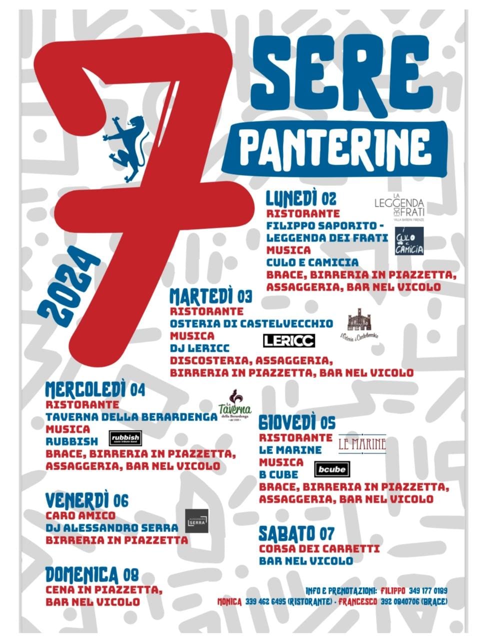 Le “Sette sere panterine” sono in programma nella settimana dal 2 all’8 settembre con appuntamenti con musica, cene e iniziative per animare il rione di Stalloreggi: “Siamo ansiosi di iniziare questa settimana di Festa titolare – dice Filippo Papi, presidente della Società Due Porte – abbiamo cambiato il format rispetto agli altri anni, offrendo ai nostri contradaioli più proposte per la cena per accontentare i gusti di tutti. Alla base delle nostre serate abbiamo cercato musica di qualità alternando Dj Set e musica dal vivo, selezionando tra gli artisti che sono più in voga. La serata con i Rubbish era stata richiesta da molti appassionati panterini e siamo felici di averli con noi per la nostra festa”.