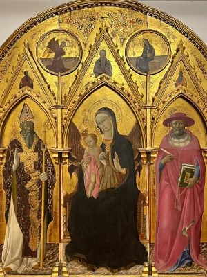 Una gradita visita dunque, da parte di prestigiosi storici dell’arte di livello internazionale, in vista della presentazione ufficiale, in programma il 30 maggio, dell’atteso intervento di ricomposizione dal nome “Finalmente insieme. Ricomposizione della Pala del Maestro dell’Osservanza”, che ha permesso la riunione di due “pezzi” di una pala d’altare che raffigura la Madonna in trono con il Bambino in piedi tra Sant’Ambrogio e San Girolamo (era conservata presso la Basilica dell’Osservanza) alla quale è stata ricongiunta la predella, dove al centro è rappresentato il Crocifisso con i dolenti e ai lati gli episodi di Sant’Ambrogio che scaccia gli ariani e San Girolamo penitente nel deserto, esposta nella Pinacoteca. Un importante iniziativa promossa dalla Pinacoteca Nazionale di Siena e dall’Associazione Amici della Pinacoteca di Siena, e resa possibile grazie al finanziamento di Pianigiani Rottami e di Rotary Club Siena Montaperti.