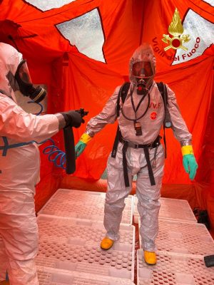 Si è svolta questa mattina, presso lo stabilimento GSK di Rosia, una esercitazione del personale NBCR del Comando dei Vigili del Fuoco di Siena, dov’è stato simulato uno sversamento di etanolo durante le operazioni di carico e scarico dei tank contenenti l’alcool presso il parco solventi dello stabilimento.