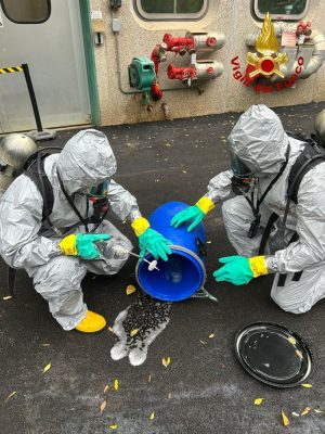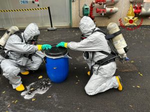 L’esercitazione ha impegnato circa 12 vigili del fuoco del comando, intervenuti con APS e carro NBCR, ed è stata svolta in raccordo e in collaborazione con la struttura di sicurezza interna dell’azienda.