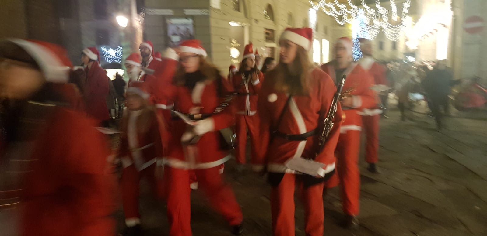 Babbi Natale in musica a Siena. Grazie ai componenti della Banda Città del Palio che ieri pomeriggio, indossando i costumi di Babbo Natale, hanno attraversato le strade del centro suonando e portando colore e allegria. Un’ iniziativa divertente e apprezzata da grandi e piccoli.
